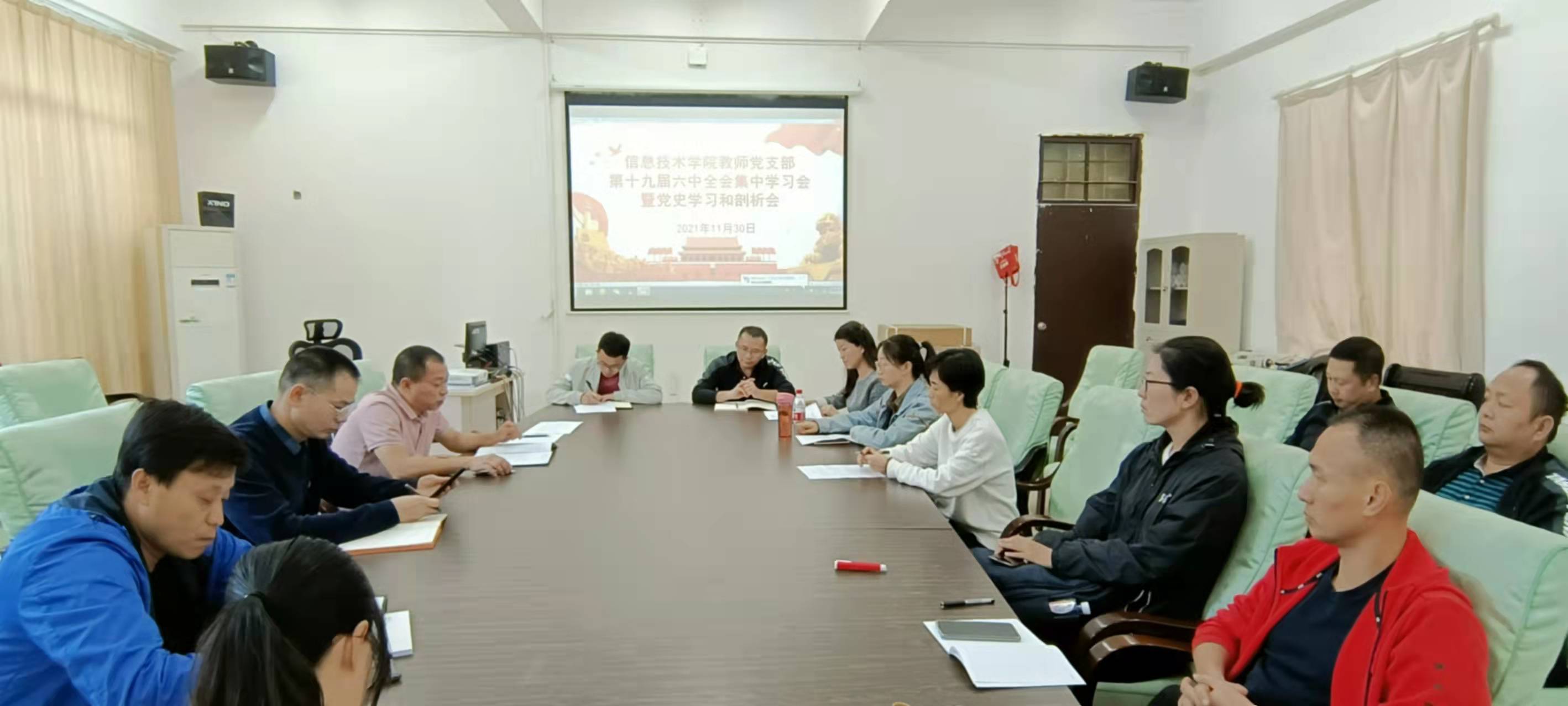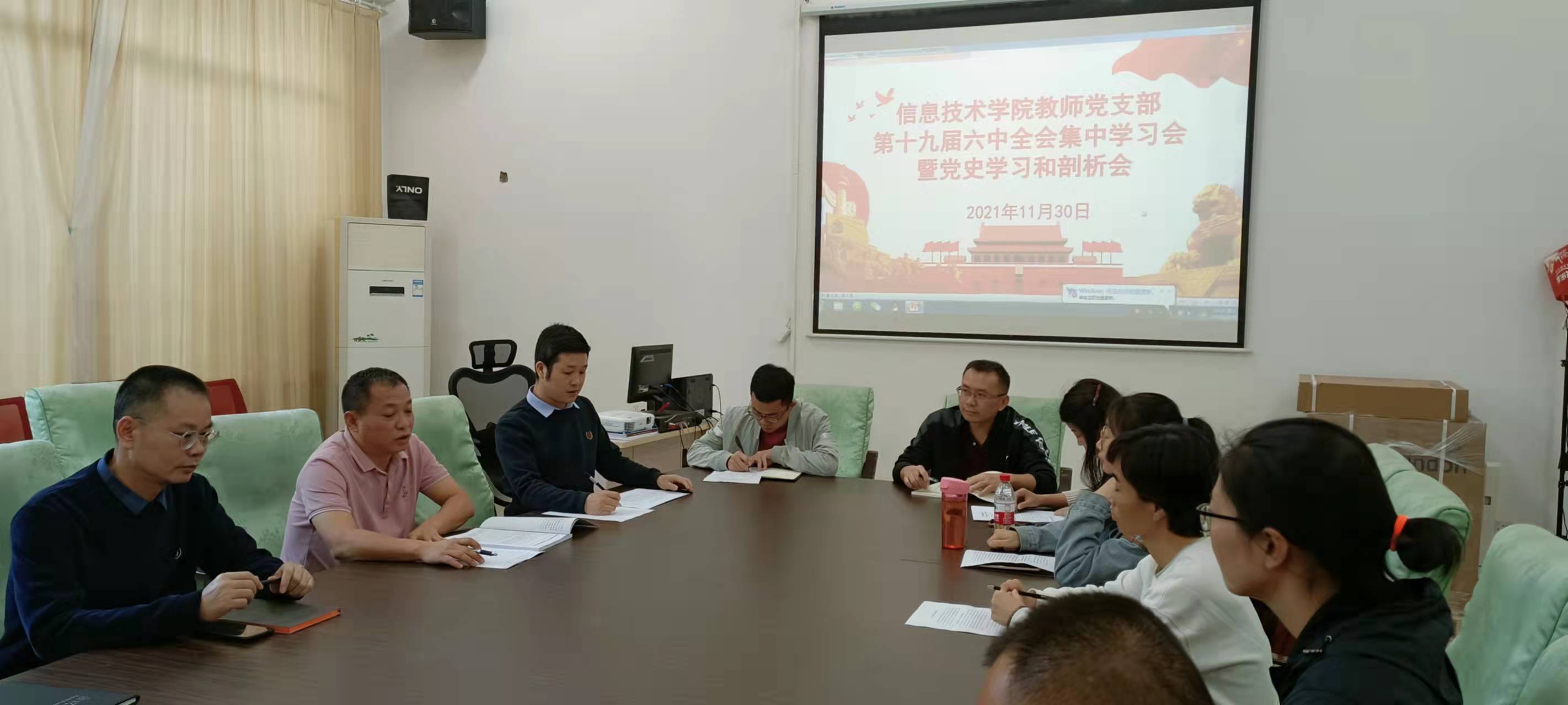 11月30日下午,太阳网集团tcy8722教师党支部在4-213会议室召开党的十九届六中全会集中学习会暨党史学习和剖析会。会议由我院书记孙金主持,院长王忠、副院长单继周、副院长康东及支部其他教师党员参加了本次学习会。
