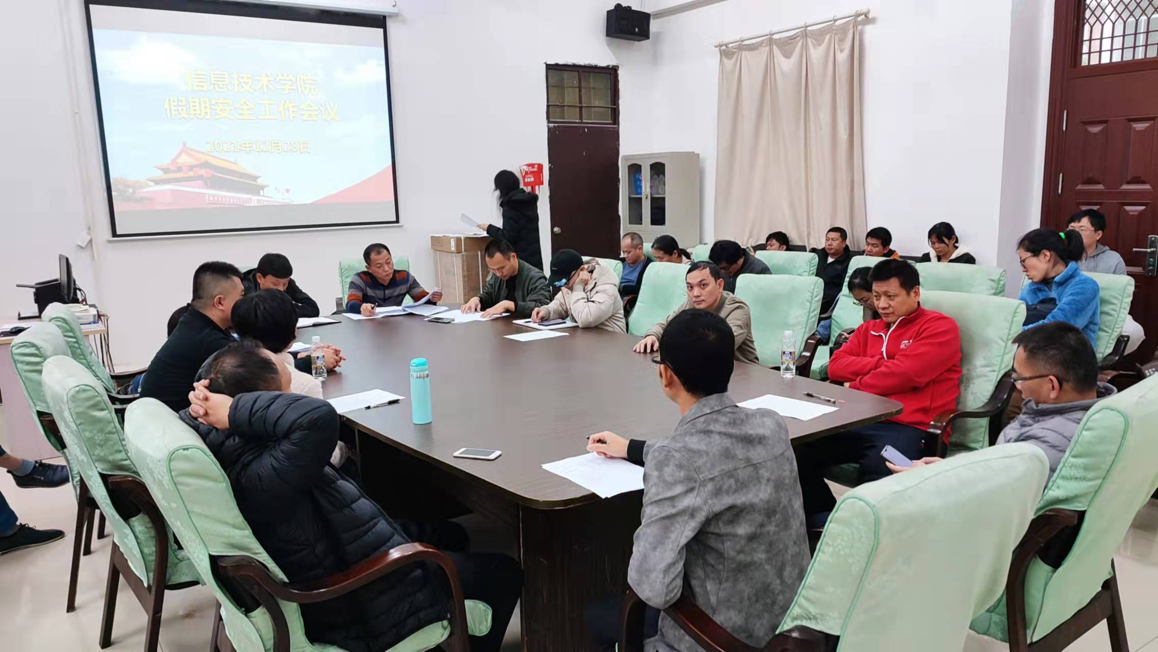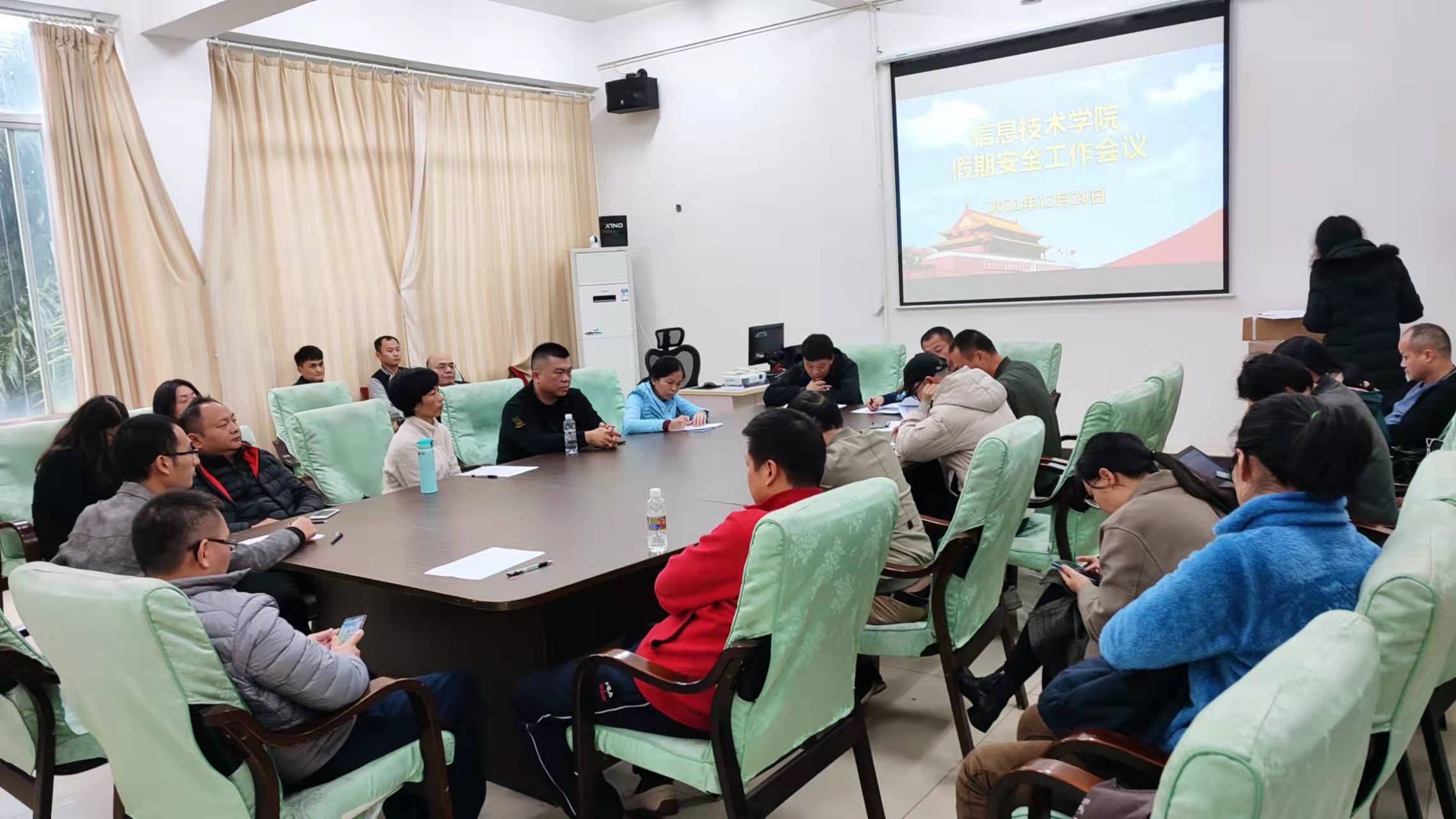 12月28日下午,太阳网集团tcy8722在4-213会议室召开假期安全工作会议,党总支书记孙金、副院长单继周、副院长康东及我院全体教职工参加会议,会议由孙金书记主持。