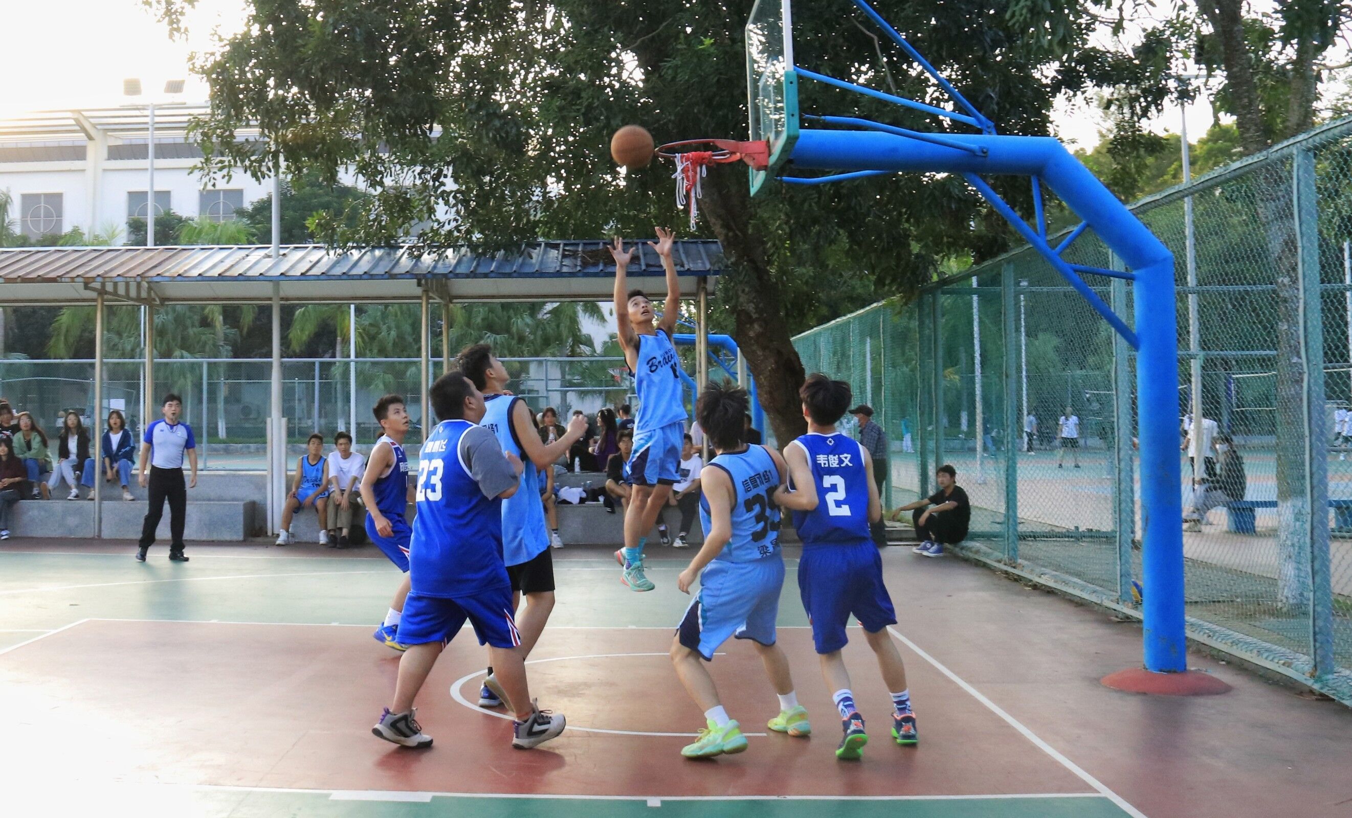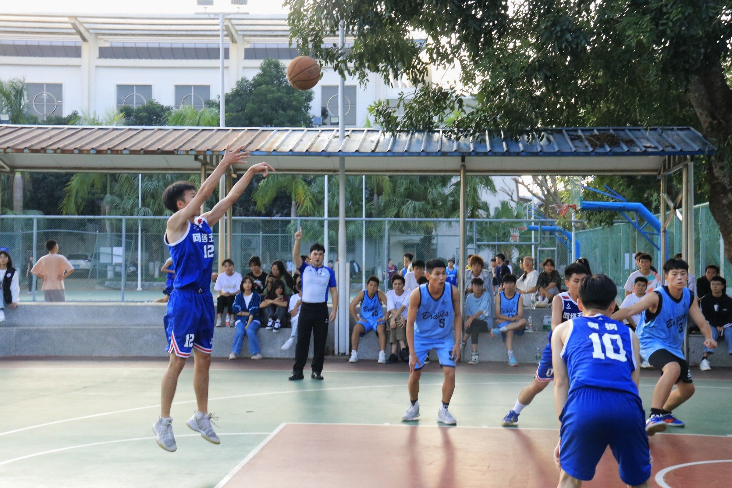 2021年11月12日(青年媒体中心 吴振慧讯),太阳网集团tcy8722于11月12日下午在篮球场进行21级“新生杯”篮球半决赛,此次参赛队伍是网络五班和网络一班,无课学生都到场为比赛队员加油打气。