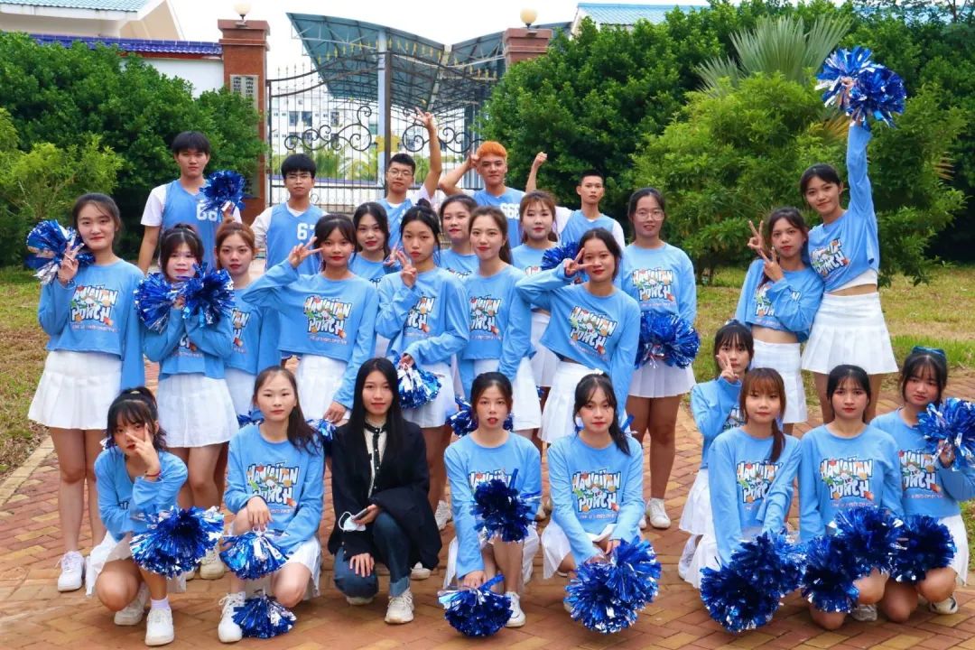 接下来出场的是我院啦啦操方队。音乐响起,身着蓝色上衣及白色短裙的女孩和身着蓝色球衣的男孩们,手拿蓝白球花,在旋律中尽情的舞动着,带感的旋律配合动感的舞姿,将运动会氛围烘托到了极致,为我院运动员增加了比赛的信心。