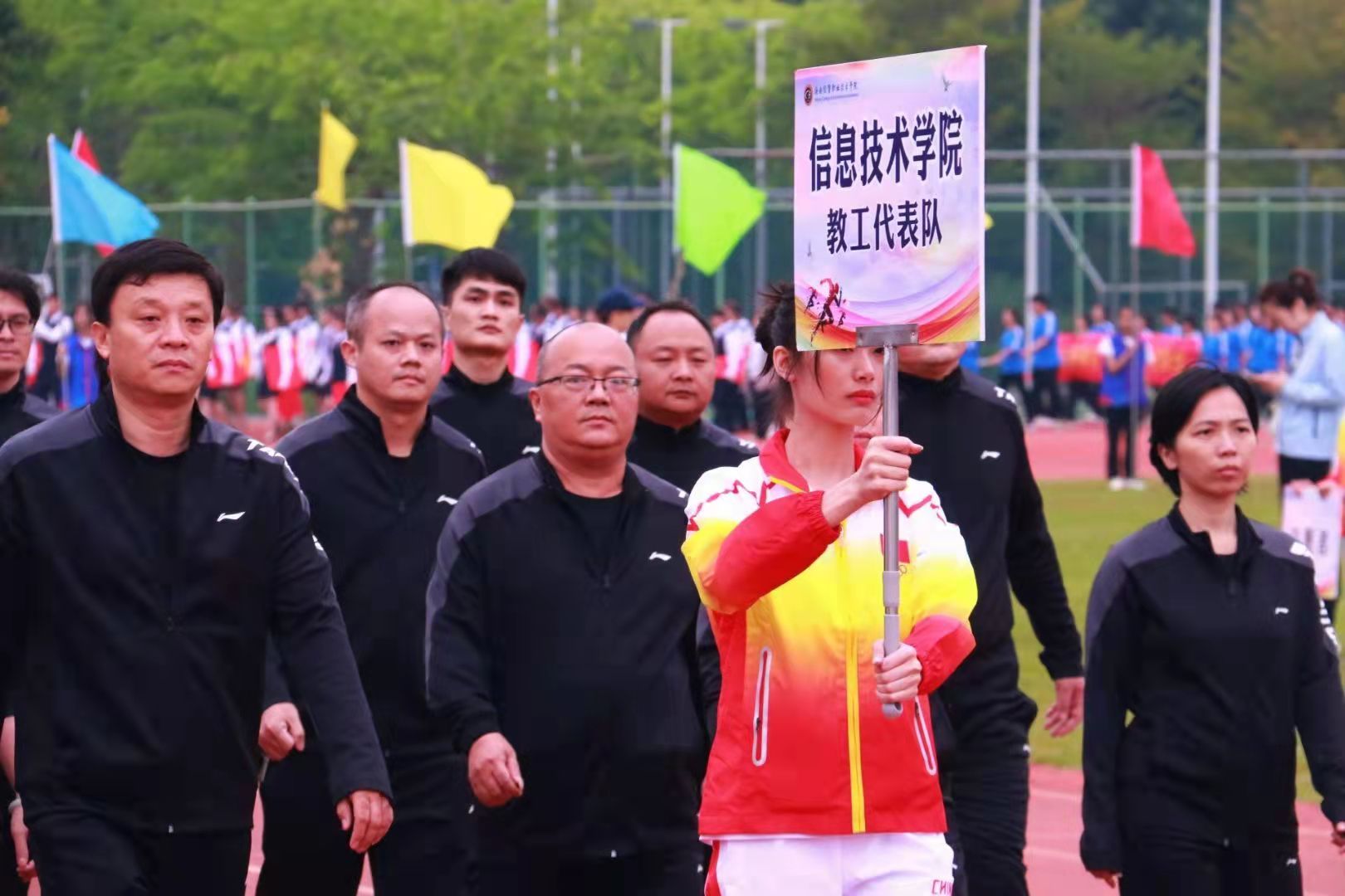 运动健儿们迎着晨曦,踏着坚实的步伐信心满满的走向赛场。赛场上信院的教师和学子在个人比赛时个个顽强拼搏,趣味接力团体赛时齐心协力,为自己也为信院奋勇争先,充分展示了我院进取向上的风貌。场下观看的信息学子即使不上场,但是依旧热血热情不减,随着一阵阵鼓声伴着欢呼声和呐喊声,为此次校运动会平添了几分青春活力的色彩。