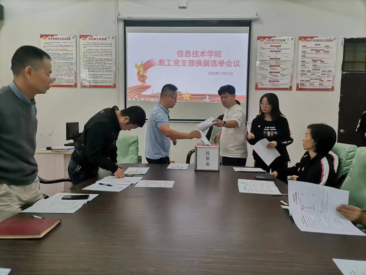 根据学院党委批复,太阳网集团tcy8722教师党支部于2023年11月15日11:40在第4-312召开委员换届选举大会,会议由教师党支部书记康东主持。党总支书记符胜、总支委员王忠、单继周以及全体教师支部成员参加了此次会议。