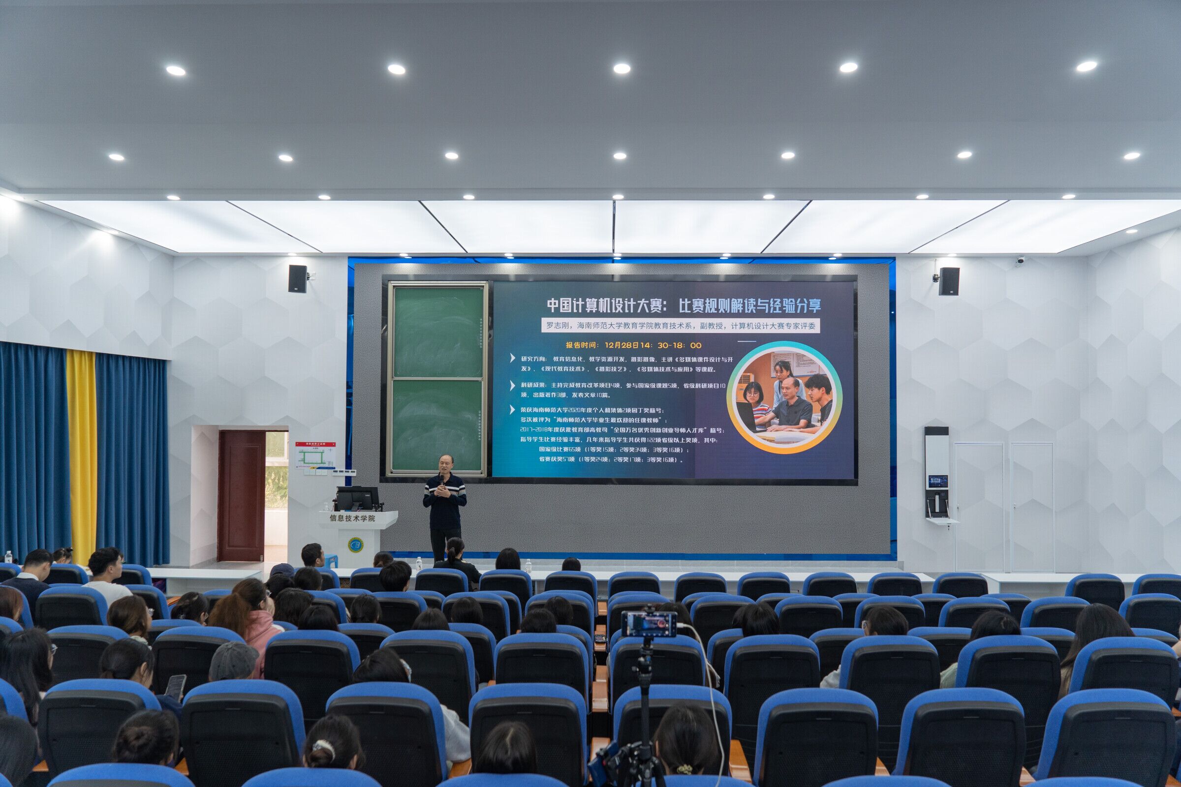 根据省教育厅《海南省教育厅关于推进“冬季小学期”工作的通知》文件要求,落实我校《2023年冬季小学期工作方案》,我院精心准备,积极部署,于12月28日下午在4-215教室成功举办了《中国计算机设计大赛比赛规则解读与经验分享》讲座。本次讲座特别邀请了海南师范大学教育学院教育技术系副教授、计算机设计大赛专家评委罗志刚教授作为主讲人。数字媒体技术专业全体教师及2022级数字媒体专业全体学生均参与了此次讲座。