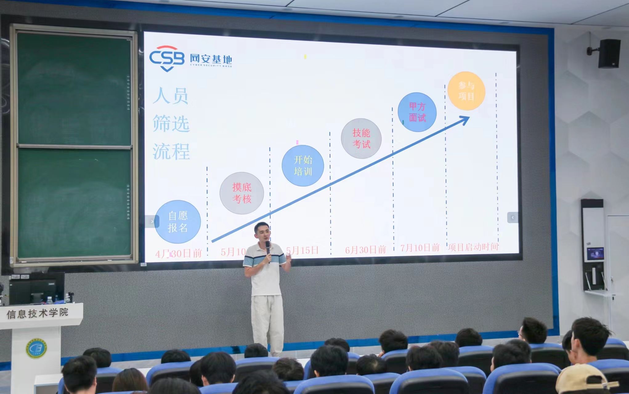 随后,许主任详细解读了网络安全项目选培的具体内容。他特别指出,此次选培项目全程免费,旨在为广大学生提供宝贵的学习机会和平台。同时,他还强调了项目的开放性和包容性,鼓励每一位学生积极参与,共同探索网络安全的奥秘。