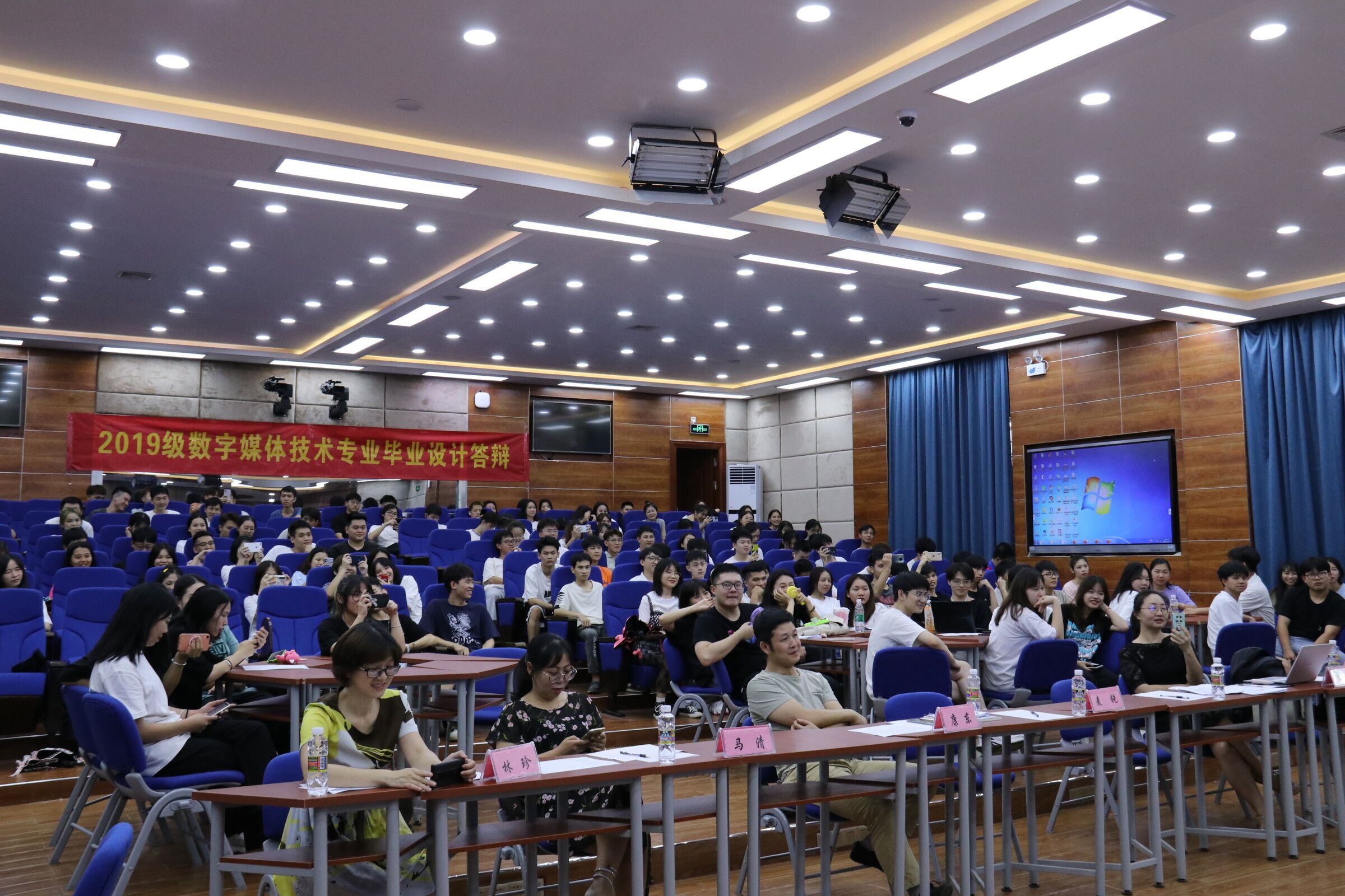 6月22日下午太阳网集团tcy8722在沉浸式教室2-215举办2019级数字媒体应用技术专业毕业设计答辩会。出席本次答辩会的老师有:张又文、康东、马清、董阁、林珍5位专业教师。2019级数字媒体应用技术专业200余名同学参加了此次答辩会。