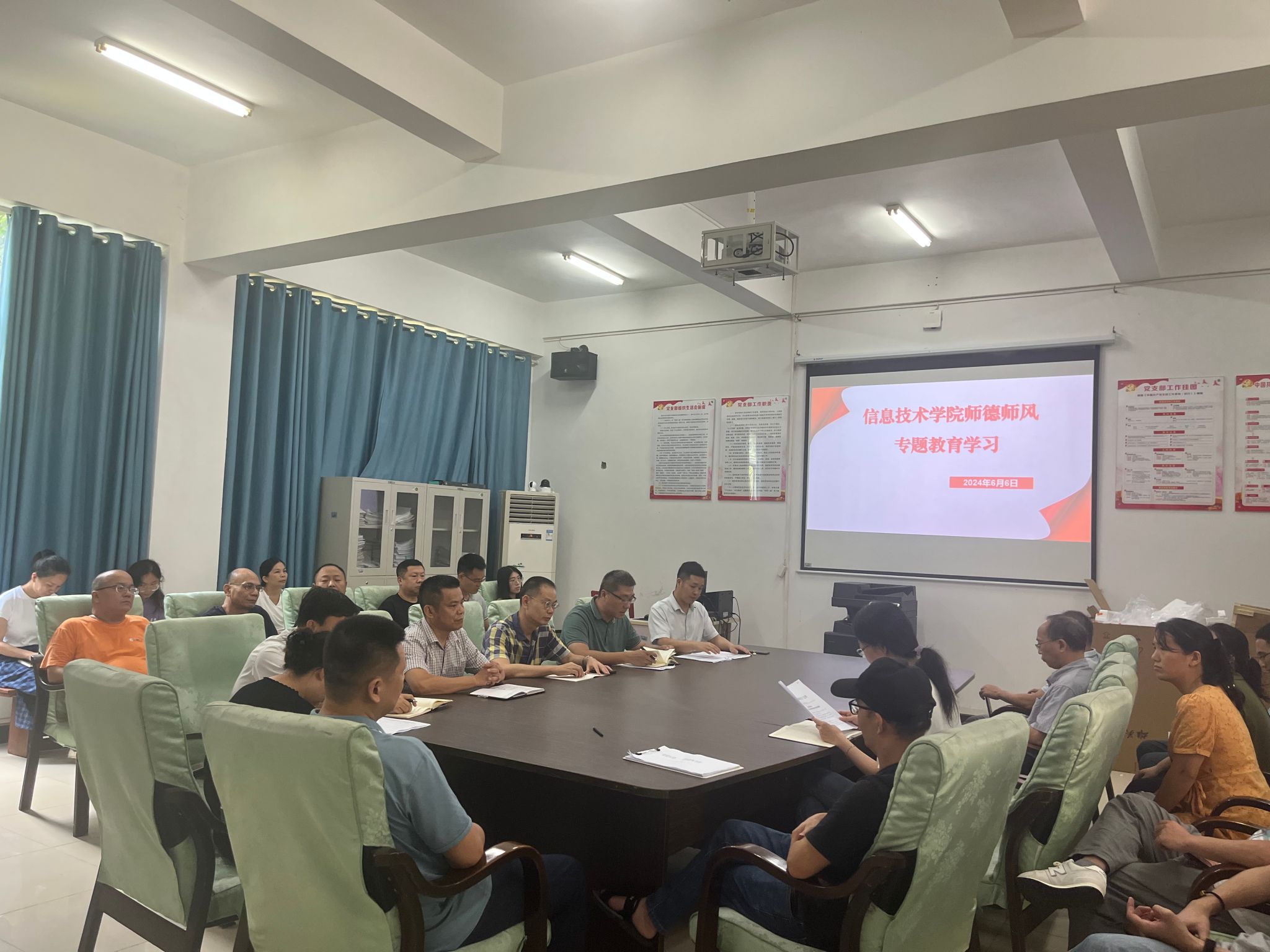 为进一步加强教师职业道德建设,2024年6月6日,太阳网集团tcy8722在4-213会议室召开了师德师风专题强化学习会。本次会议由党总支书记符胜主持,太阳网集团tcy8722全体教职工参加会议。