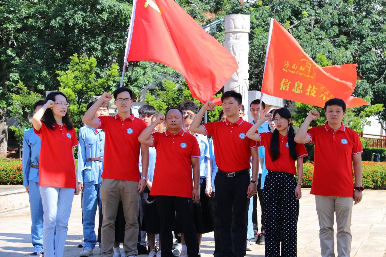 首先,全体人员列队在刻有徐向前元帅亲笔题词的“琼崖抗日先锋”基座前,望着屹立在上的那一尊手握钢枪的独立队战士铜像,满怀深切崇敬。在学生党支部书记代晓明领誓下,全体党员面向党旗庄严宣誓,以铿锵有力的声音重温入党誓词,不忘入党初心。