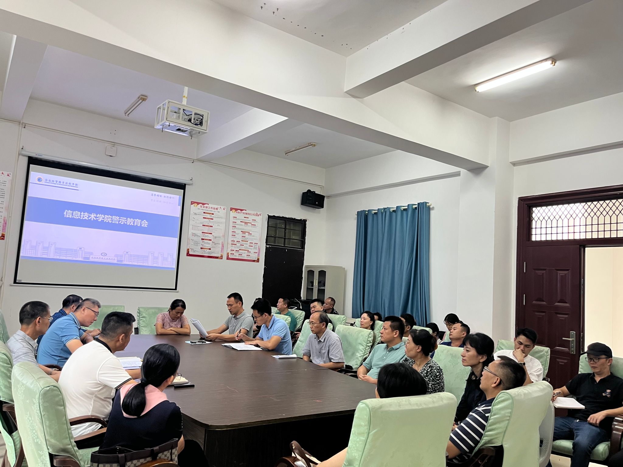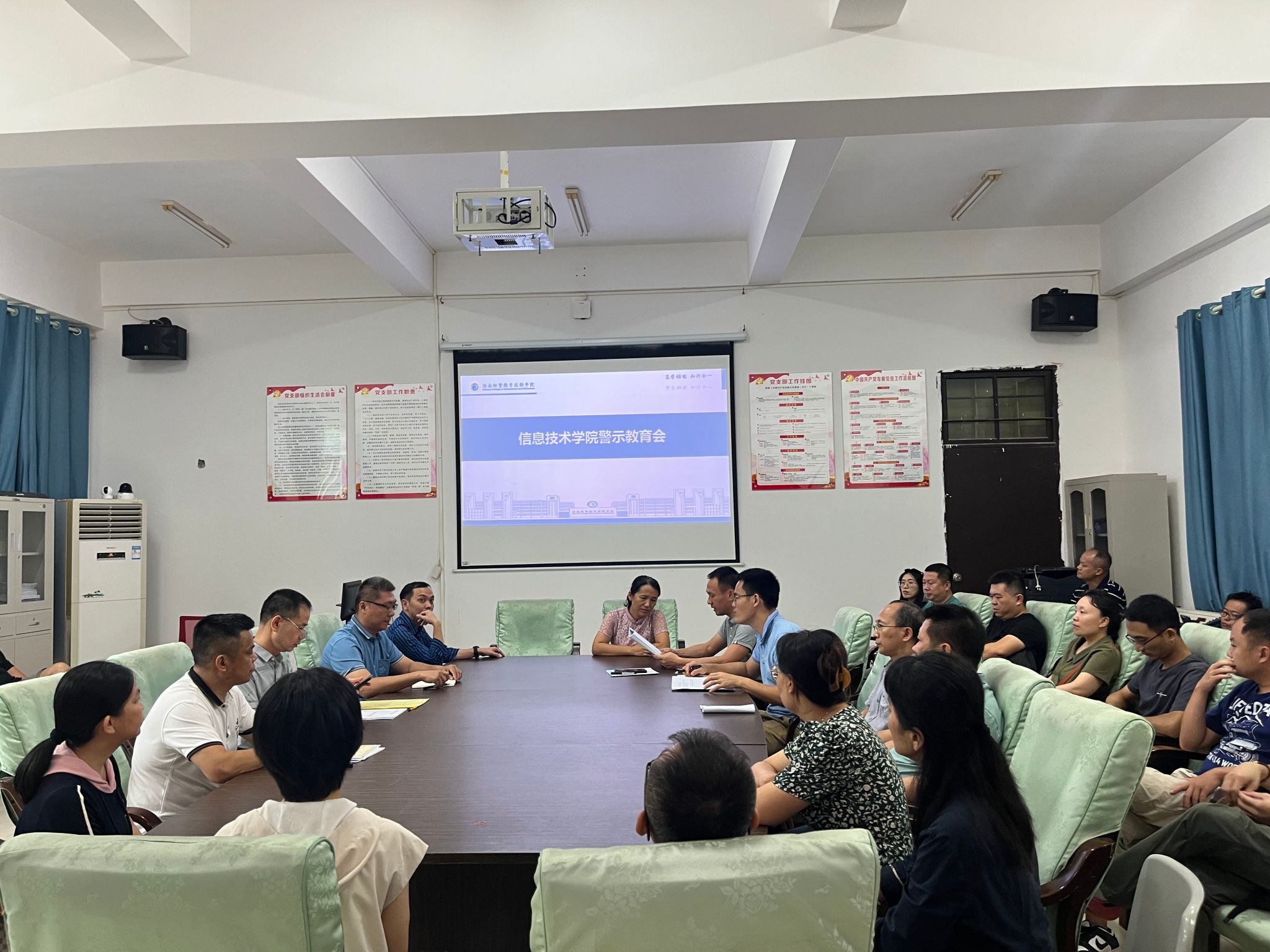 6月25日,太阳网集团tcy8722在4-213会议室召开警示教育大会。大会由党总支书记符胜主持,学院全体教职工参加。