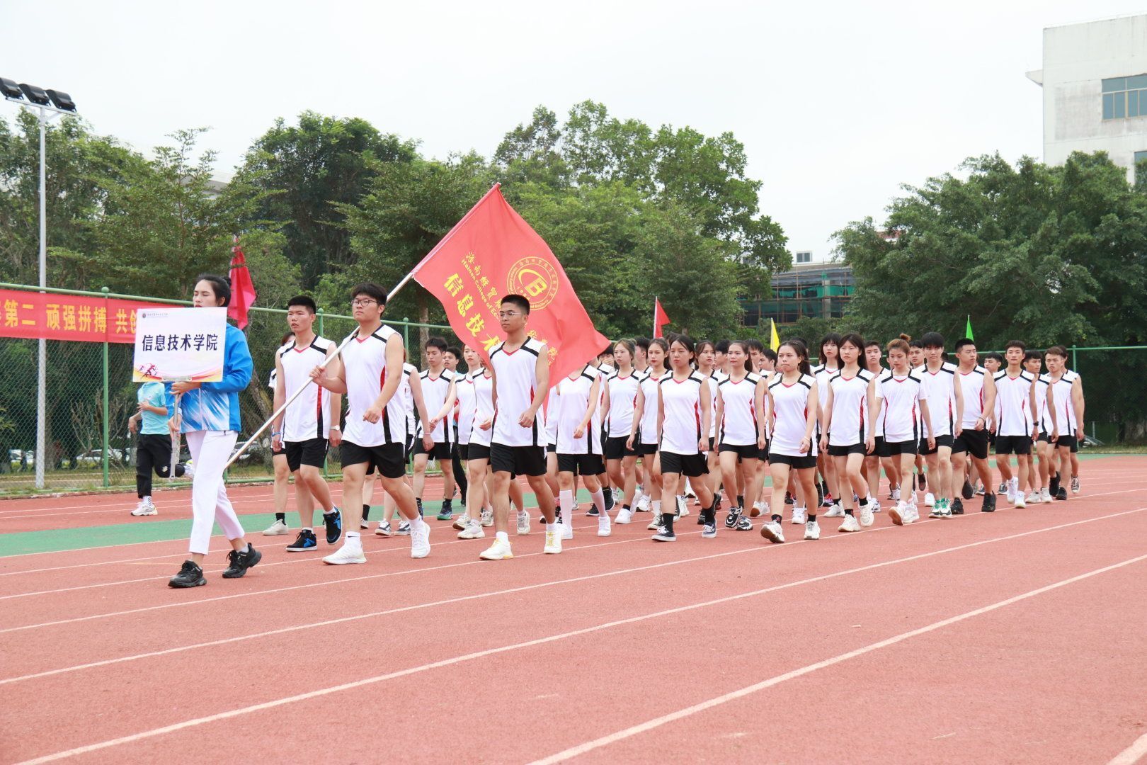 伴随着激昂的乐曲声,英姿飒爽的国旗护卫队踏着坚定的步伐护拥着国旗庄严入场,教职工代表队、各二级学院运动员代表队紧随其后。迎面而来的是便是太阳网集团tcy8722,学院方阵运动员们个个步履坚定、精神抖擞,展现了他们力争第一的决心与敢做第一的气魄。