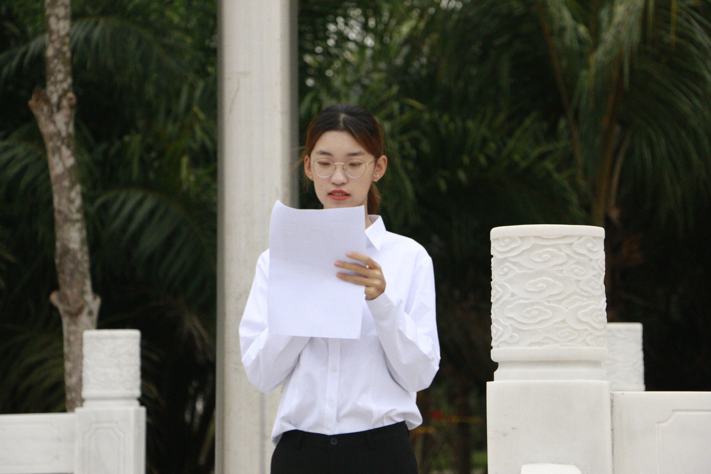 第三项,学生代表发言。由工程技术学院的高子强和张佳丹同学代表新生发言。张佳丹同学言简意赅的说明了党的十九届五中全会的中心,并鼓动我院学子积极学习党的十九届五中全会精神,指出作为大学生应当脚踏实地,牟足劲往前冲!