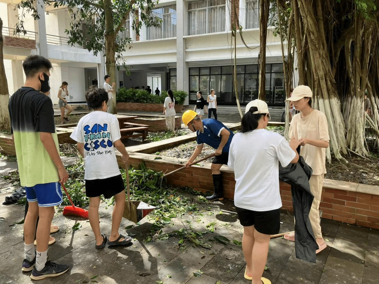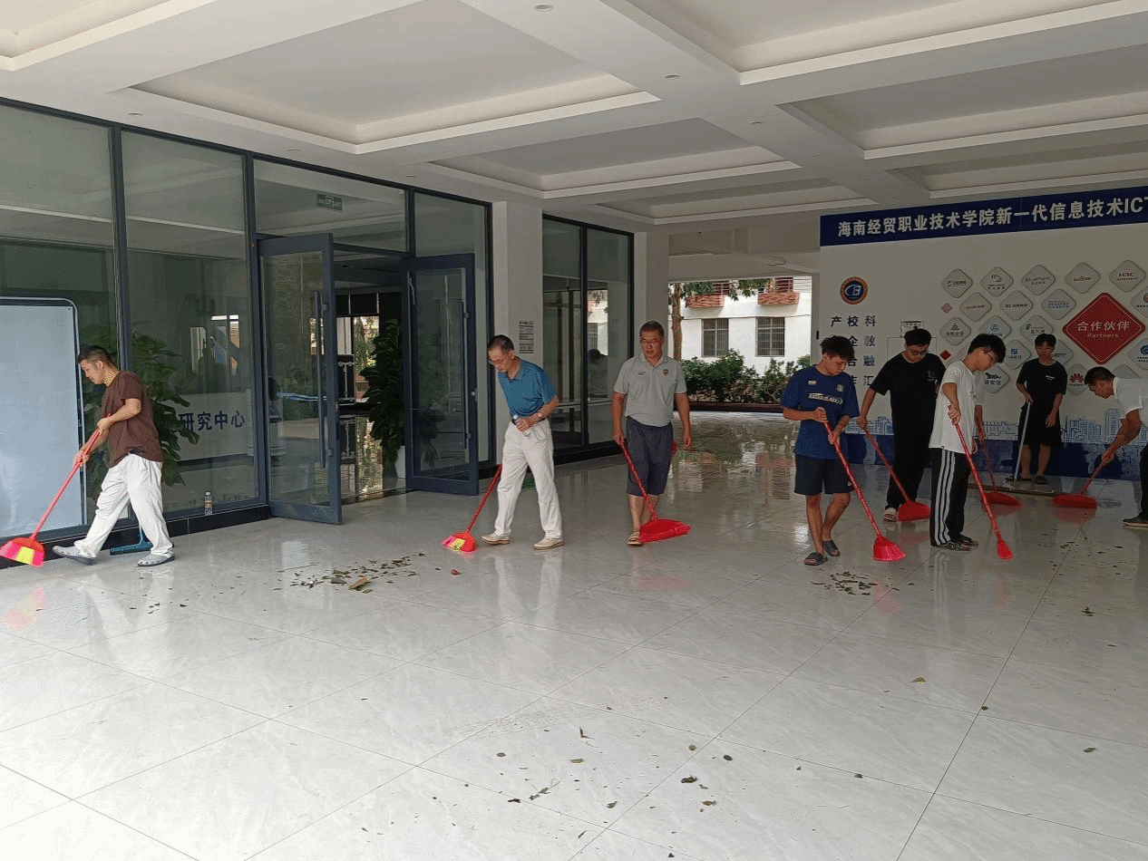 在灾后重建的艰巨任务中,大家分工明确,协同作战,手持工具,顶着烈日,对第四教学楼和经贸南路进行了全面细致的清理。从道路上的断枝残叶到垃圾杂物,每一个细节都不放过,确保了校园环境的整洁与安全。同时,学院组织人员对机房、厕所等重要区域进行了全面检查和维修,清理排水系统,检查墙体结构,及时消除安全隐患,为恢复正常的教学秩序奠定了坚实基础,确保师生能够在一个安全、有序的环境中继续学习和工作。此外,辅导员们更是深入宿舍,逐层逐间检查学生安全情况,排查灾后隐患,确保每位学生的生活与学习得到妥善安排。