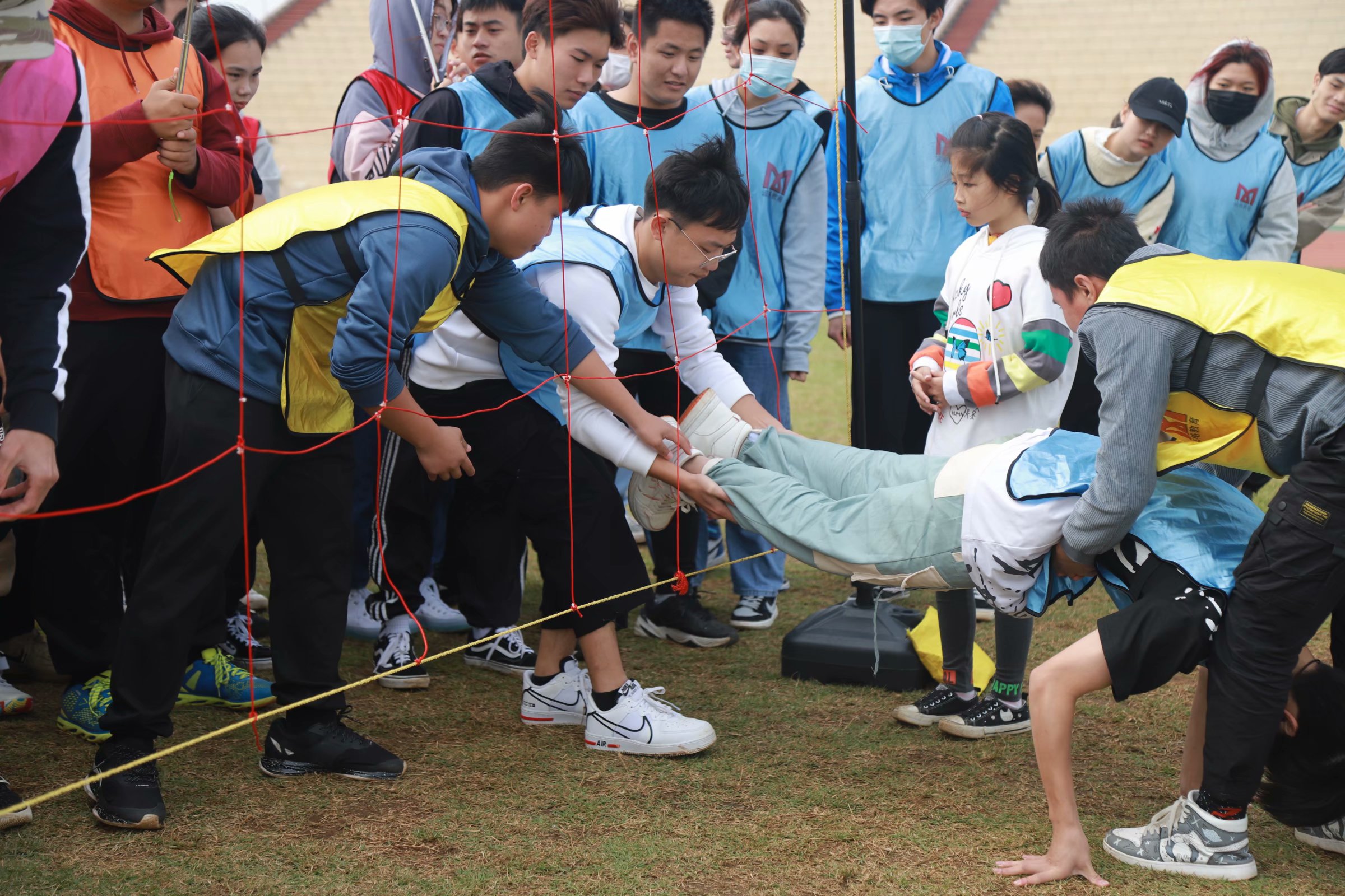 在“传环”的比赛中,我们可以看到干事们专心致志的样子;在“踏砖”的比赛中,我们可以看到干事们一副干劲十足、朝气蓬勃的样子,比赛场地充满了干事之间加油助威的声音;最紧张刺激的是“过网”,通过干事们无声的配合将一个又一个的队友送到网的另一边,在经过几次的失败重来后,终于共同达成团队的目标。