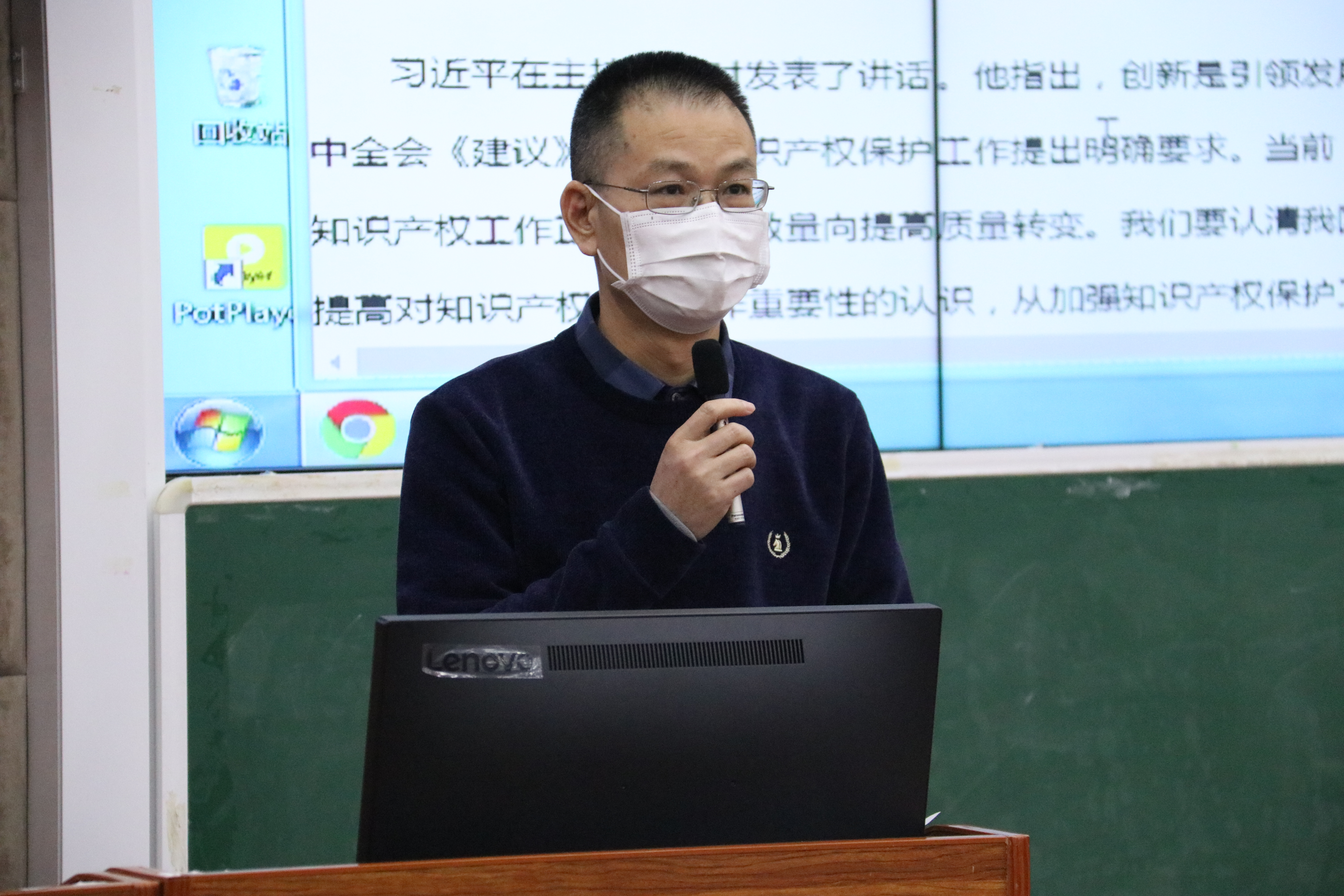 段教授与师生们分享他的发明成果以及人工智能在海南经济发展中的应用。他说,我们要以海南经济社会发展需要为导向,积极推动人工智能与产学研的结合,培养更多科研人才,并鼓励大家为人工智能与海南经济社会深度融合,为自贸区、自贸港建设提供科技创新支撑。