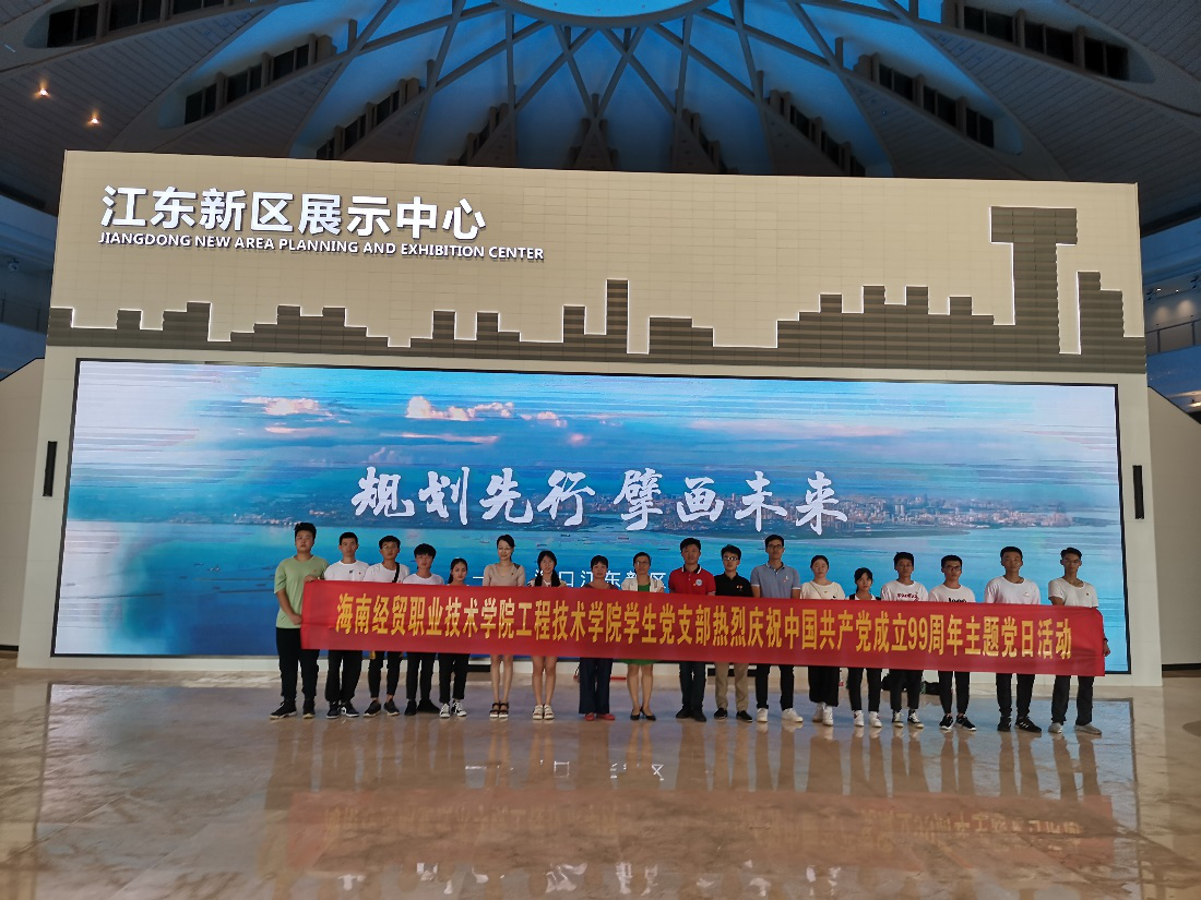 2020年7月8日,工程技术学院学生党支部于海口江东新区展示中心举行庆祝中国共产党成立99周年主题党日活动,学院党总支副书记陈亚芳、学工办主任梁其钰、学生党支部书记代晓明、辅导员郭蓉佳以及2018级预备党员出席本次活动,学校关工委黄慧娟老同志同时受邀参加。