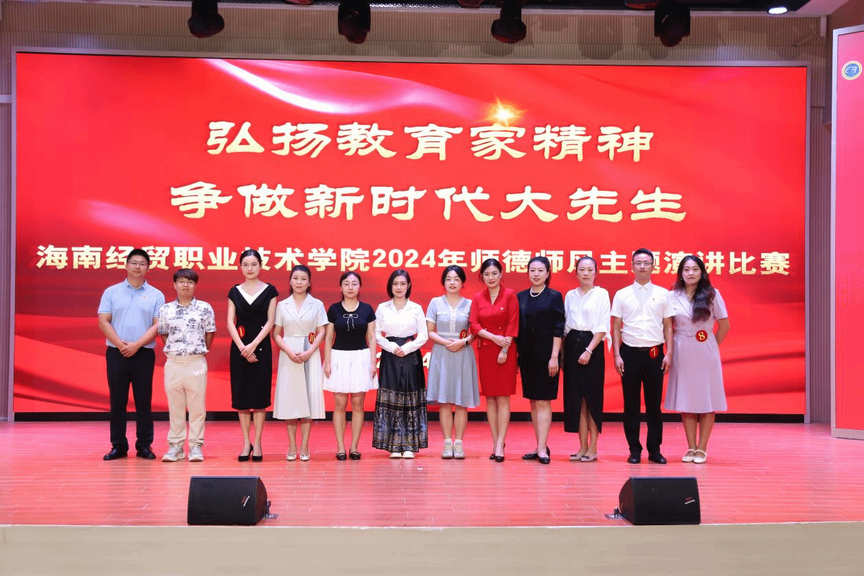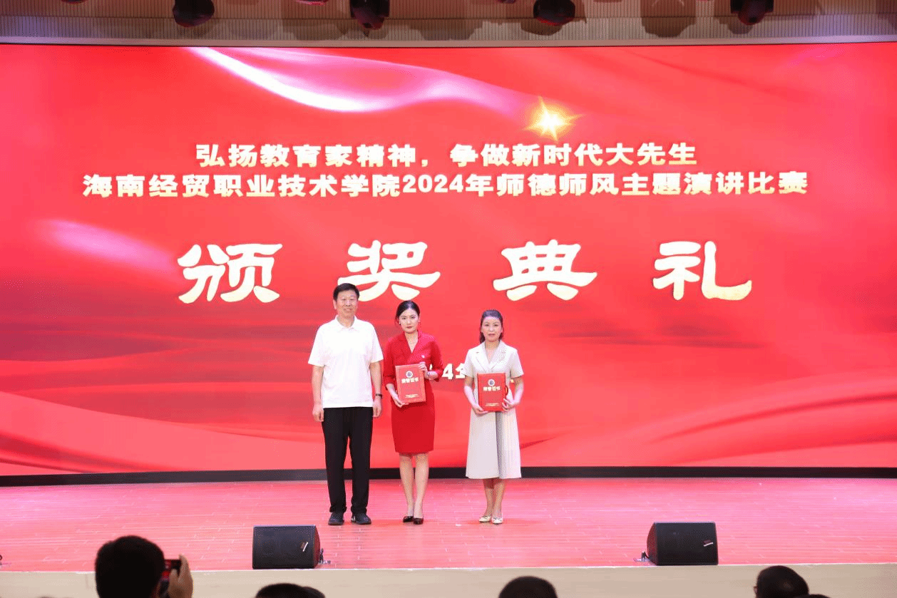 9月27日下午,海南经贸职业技术学院师德师风演讲比赛决赛在图书馆二楼报告厅举行,有来自10个二级学院及机关、教辅党总支选送的12名教师参与角逐,我院张又文老师和马克思主义学院曲文晗老师获得并列一等奖。 本次比赛以“弘扬教育家精神,争做新时代大先生”为主题,旨在激励广大教师坚守教育初心,勇担育人使命。