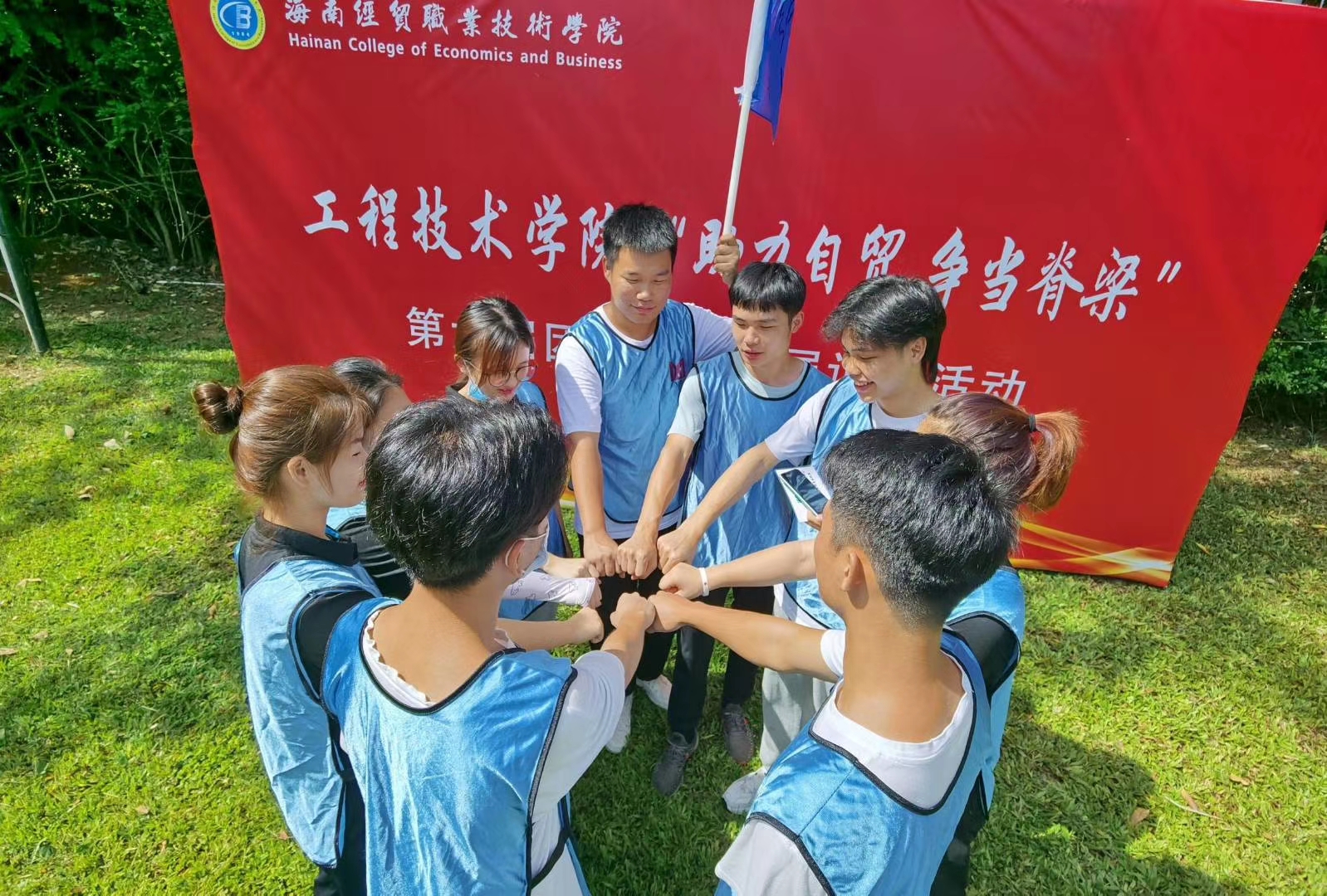 为提高工程技术学院19级团学青及学生干部的团队协作能力,加强交流合作,增强凝聚力和向心力。于2020年7月8日上午8点,在桂林洋山水度假村举行了“助力自贸 争当脊梁”素质拓展活动。由梁其钰老师,鄢兴祥老师,唐图老师以及其他工作人员的带队,全体团学青、班级干部共40余名成员参加此次活动。 活动中,大家通过扑克牌花色分成了四个小组,各小组蓄势待发,短短时间内,并和各自的组员建起了组名、口号、队歌、logo以及阵型,素质拓展活动就此拉开帷幕。随着比赛进行,节奏慢慢的加快,大家逐渐放开手脚进入状态。在各小组的队员们团结一心,相互帮助中,共同闯过了一圈到底,珠行万里,硫酸河,穿越电网等游戏。 本次活动中全体成员都积极参与、配合默契、踊跃互动,面对困难迎难而上,面对队友不抛弃不放弃,大家凝聚成团,奋力前行。本次活动不仅有效增进了同学们的勇气和自信心,还增强了大家对团队精神的认识,感受到沟通、合作、相互激励、和谐融洽人际关系以及团体合作的重要性。