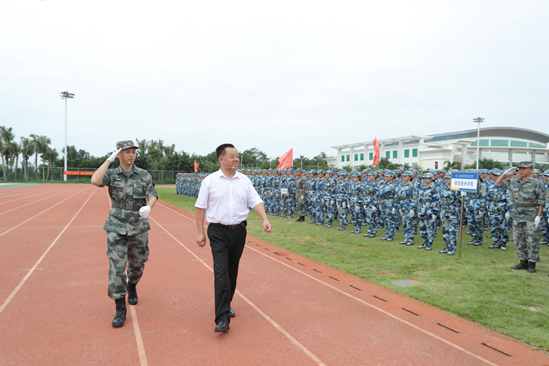 10月23日下午,海南经贸职业技术学院2020级新生军训总结暨表彰大会在西运动场隆重举行。承训部队刘元春团长,学校党委副书记、院长黄景贵,党委副书记崔昌华,党委委员胡友波出席大会。本次大会由崔昌华主持。