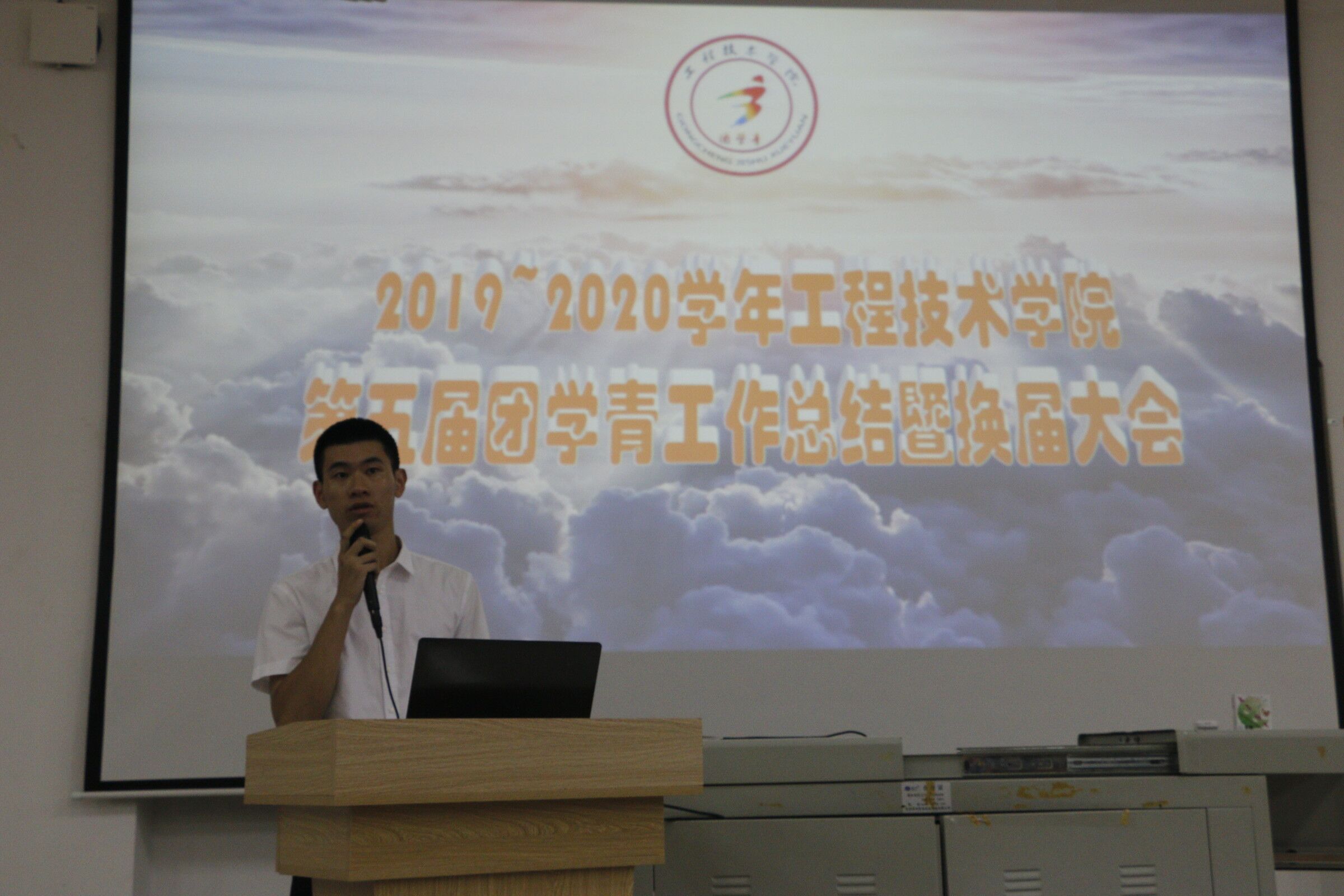 团总支学生会主席团做相关工作总结后,由工程技术学院团学负责人鄢兴祥和学工办主任梁其钰老师致辞,随后,由干事们演讲自己的PPT,演讲自己对团学青的认识和在团学青的工作成长历程,以及对自己意向岗位的竞选和对未来工作的展望。