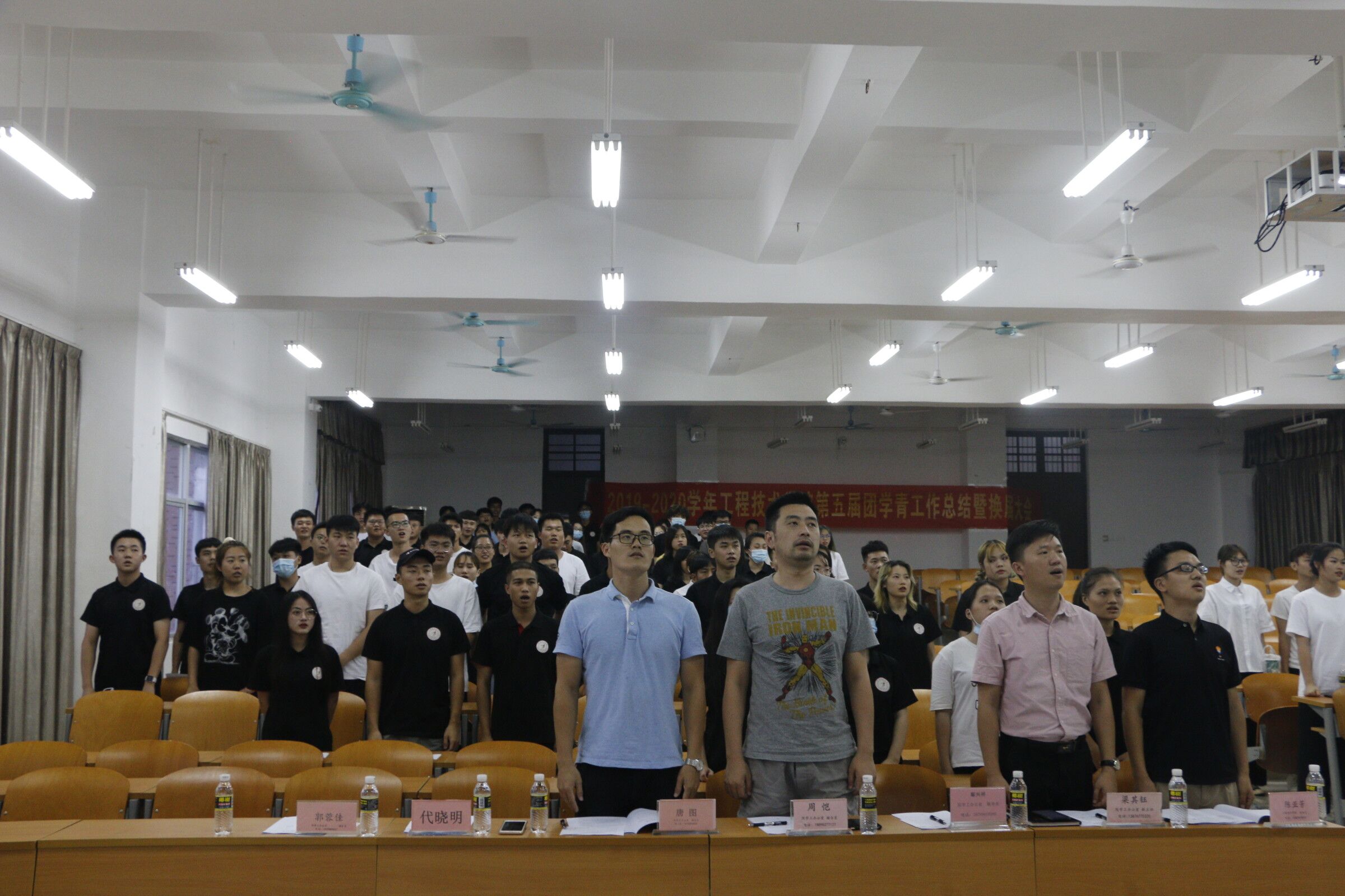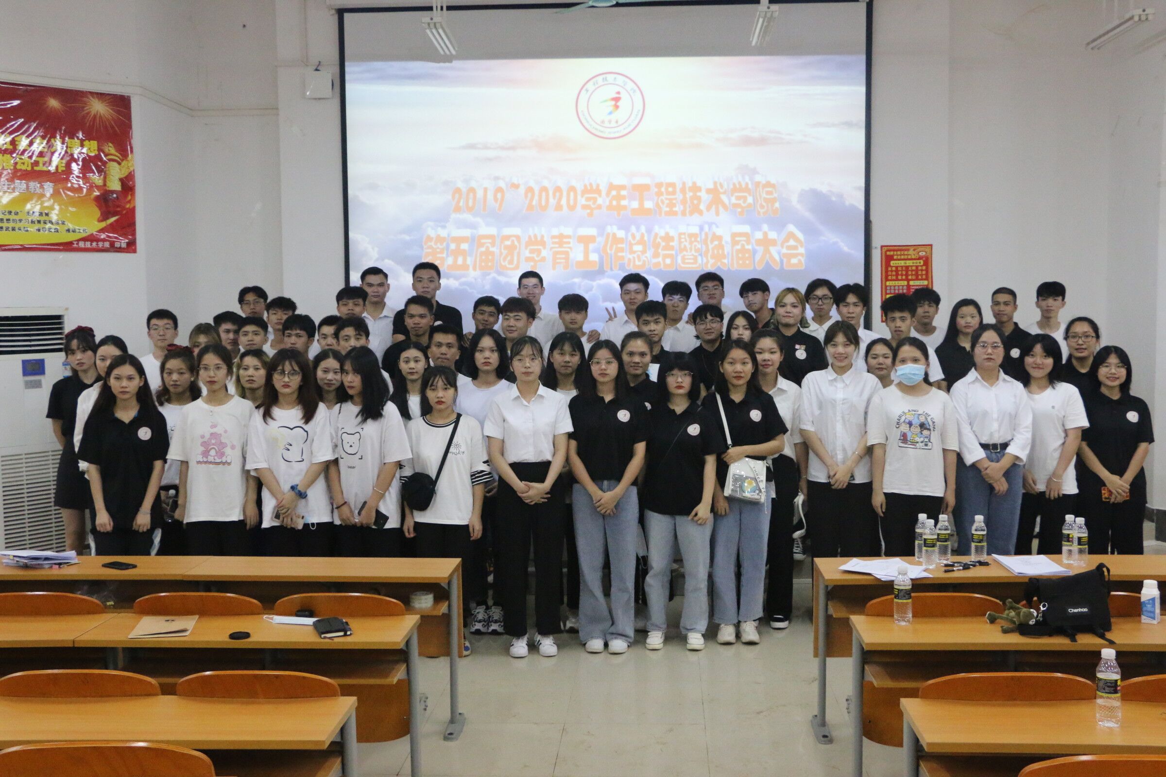 2020年7月2日讯(青年媒体中心罗盼 报道),伴随着期末的到来,18届学生会的任期也即将结束,为了学生工作的顺利开展,同时也是为了给新学期奠定良好的基础,7月2日19:00点工程技术学院召开2019—2020学年第五届团学青工作总结暨换届大会。换届大会在2-408举行,参加本次会议的人员有:学工办主任梁其钰,18级辅导员周恺,19级辅导员唐图,团学负责人鄢兴祥,第五届团学青成员及团学青干事还有19届学生干部,会议由团学青主席叶俊男主持。