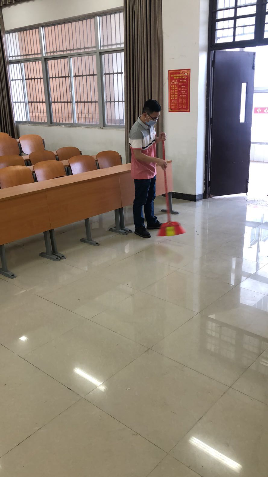 2020年5月6日(院青年媒体中心报道)讯,5月6日下午,工程技术学院教职工30余人带着对同学们的牵挂和返校期待,对校园和教室进行卫生清洁大扫除,把满满的关心和关爱传递给了每一名学子,以实际行动为同学们送上一份返校复学的“爱心礼物”。