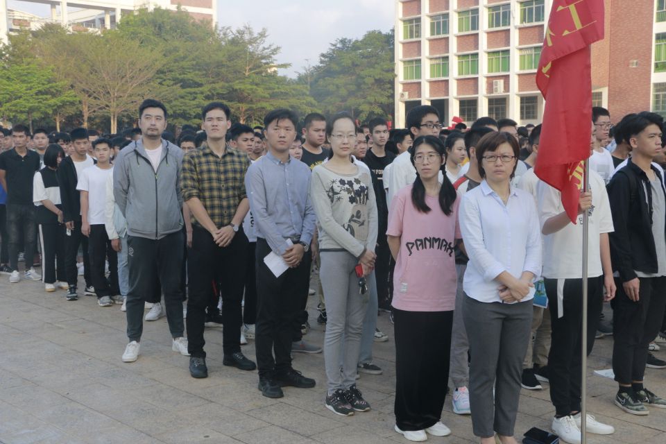 2019年11月25日(院青年媒体中心)讯,11月25日早上7:20分,工程技术学院于经贸广场举行升旗仪式。出席本次升旗仪式的有:工程技术学院党总支副书记陈亚芳、学工办主任梁其钰、团学负责人周恺、17级辅导员唐图、18级辅导员代晓明、18级辅导员郭蓉佳、19级辅导员鄢兴祥以及我院全体学生。