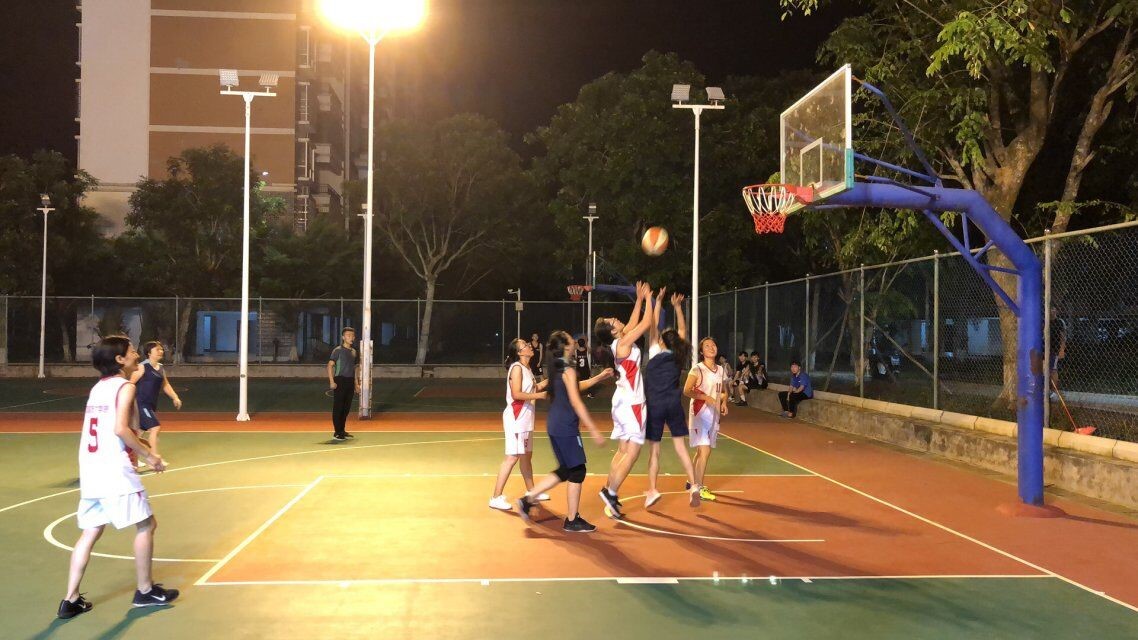 2019年9月27号(院青年媒体中心)讯,9月25日晚19:30在篮球场我院女教职工代表队迎来了学院第四场篮球赛。本场比赛为我院女队VS机关女队。赛前双方热身、试球,拉拉队也迅速地集结到场。