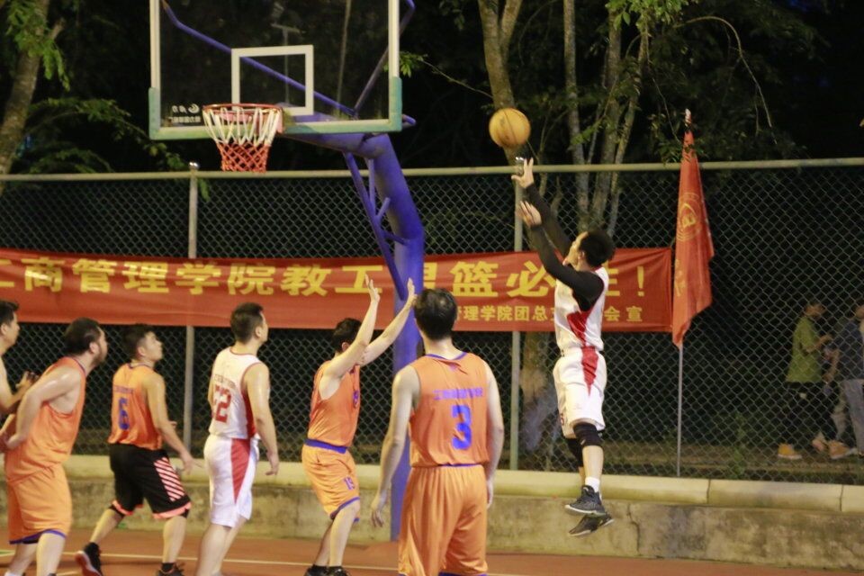 随着裁判的一声哨响,比赛正式开始,我院老师迅速投入状态,实施战术,组织进攻,现场的气氛被瞬间点燃,引起两队拉拉队队员的一阵阵喝彩;防守时,我院男队球员配合默契,抢球、传球、突破,一连串的动作一气呵成,干脆利落的技术将比赛的激烈程度又推到了一个巅峰。我院教师为集体荣誉奋斗,在赛场上越战越勇,我院拉拉队加油助威的热情越发高涨。随着比赛的进行,上半场比赛结束,我院以(工程)31:30(工商)的成绩暂时领先。