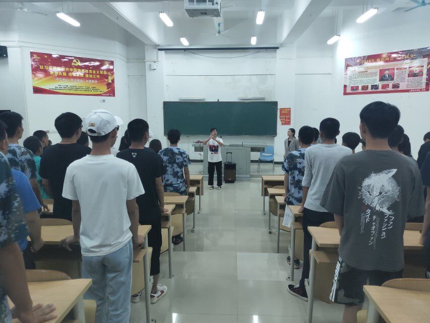 2019年9月25号(院青年媒体中心)讯,为了庆祝祖国成立70周年,我校举办了纪念建国70周年“脊梁杯”2019级新生大合唱比赛,各个学院积极参与活动。距离比赛时间不远,我院老师和同学们自9月22日起,在每天军训结束后利用中午与晚上自习时间在2-102教室进行大合唱练习,主要参与的成员有:18级蔡玉意同学,以及19级大合唱的同学们。