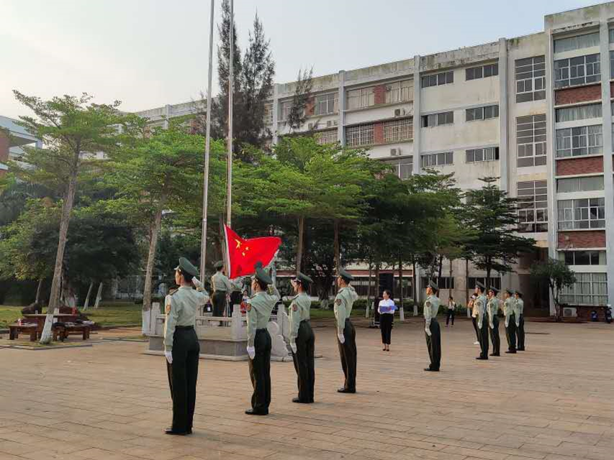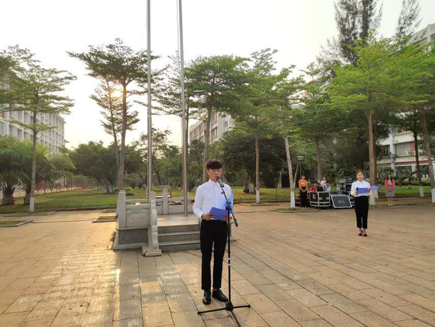 2019年4月8日(青年媒体中心报道 段国帅)讯。为了深入贯彻落实习近平总书记4.13重要讲话精神及李克强总理考察学校时重要讲话精神,鼓励广大青年积极投身海南自由贸易港的建设,进一步弘扬社会主义核心价值观,营造浓厚的爱国主义氛围,全校师生齐聚经贸广场举行了隆重的升旗仪式。