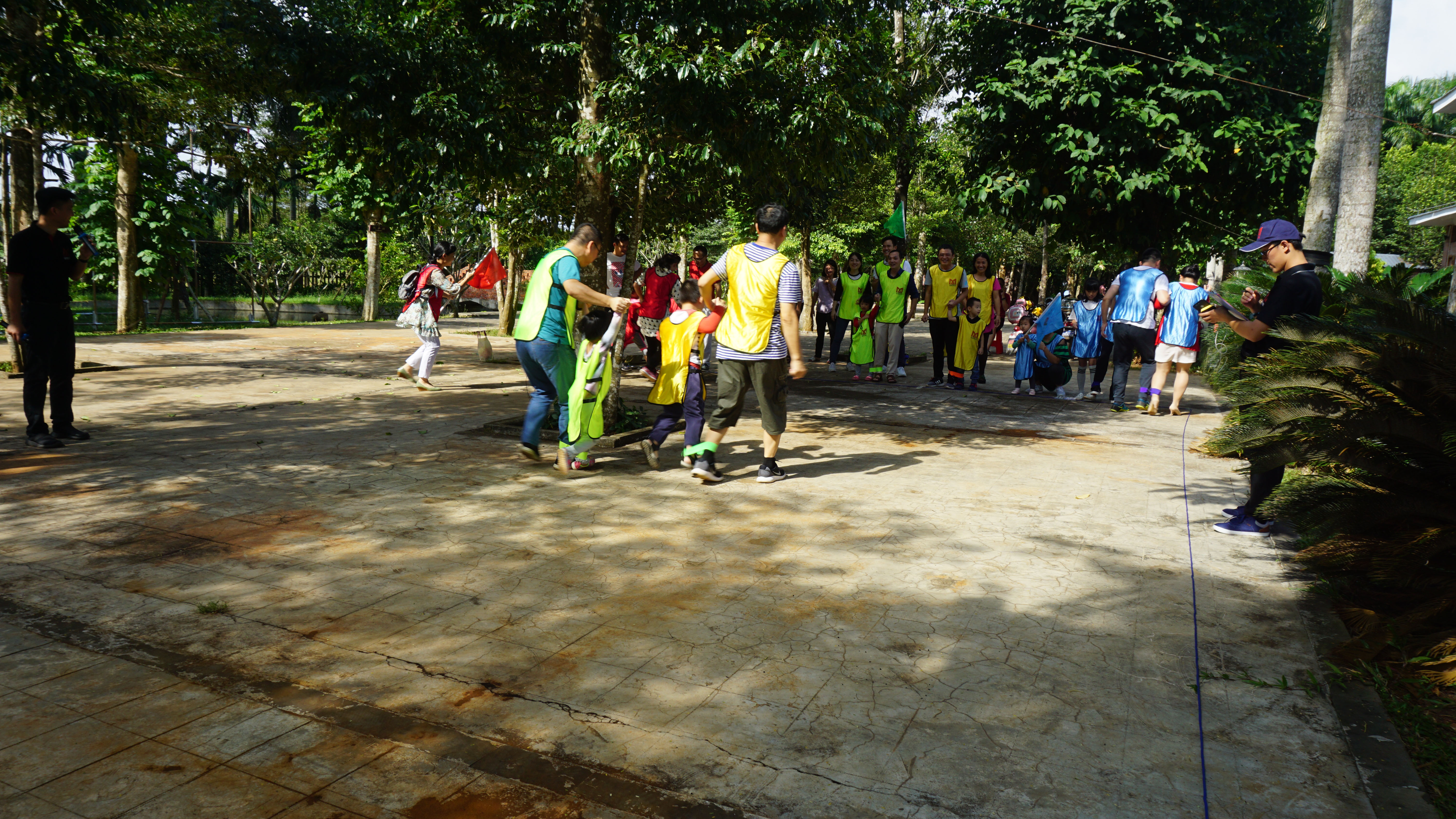 抵达活动地点后,大家自由参观农家乐菜园、果园并进行了采摘,随后所有参加的成员以家庭为单位被分成四个作战小分队,每个小分队自行讨论确定队长、队名、队徽、口号、队歌,并按要求摆出相应的队形,组建好团队后,每个小分队进行了团队展示,展示的队伍齐心协力喊出了口号、合唱了队歌,摆出了别具一格的队形。小组展示结束后,各小分队进行了亲子游戏的比拼,每个亲子游戏都是家长和小孩共同参与,激烈的两人三足接力和为你辅路两个项目将家长和小孩的情绪充分调动起来。随后的环节是考验家长和小孩的默契程度,家长和小孩全部蒙上眼罩,家长围坐一圈,小孩轮流抚摸家长们的手或脸进行辨别找到自己的父母,这一环节小朋友表现都很出色,很快便找到了自己的父母。