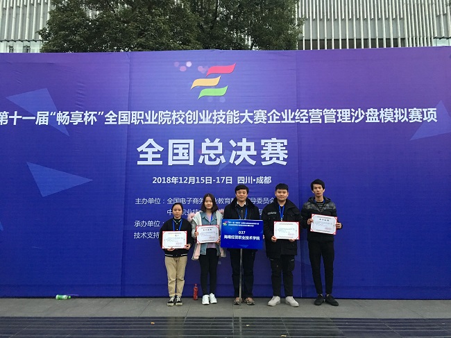 工程技术学院贯彻落实创新创业发展理念,全面推进职业教育内涵式发展,以学生为主导,提高学生在训练过程中发现问题、解决问题的能力,较好地锻炼与提升学生自主创业及管理企业能力,为学生今后的自主创业奠定坚实基础。在指导教师单继周、马红的耐心指导下,工程技术学院四名学生经过二个多月的赛前刻苦训练,凭借扎实的知识和良好的团队合作精神,表现突出,荣获比赛团体二等奖,充分展现了海经贸学子的风采,他们的精神值得大家学习。