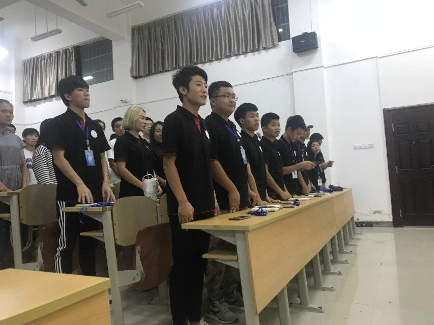 大会开始,主持人先介绍大会历程。全体奏唱团歌。李云飞主席上台发言,以端正动机、一切以全工程全学院学生服务等几个方面来定位我们团学团学青。负责人唐图老师上台发言,欢迎各干事们进入这个“大家庭”你们的选择是极其正确的,团总支副书记王晨,以“一家人、互帮助、共团结”等方面告诫各干事们传承工程的优良传统。