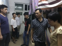 陈书记及各辅导员等走访了女生5栋宿舍以及7栋男生宿舍楼。检查了各宿舍的安全状况,以及帮助他们把玻璃窗固定好,并强调预防台风的相关注意事项。在走访过程中,老师和学生会成员多次叮嘱同学台风天气务必不要外出,密切关注台风动向,门窗一定要关好,阳台上的物品要收进来,注意用电安全等事项。