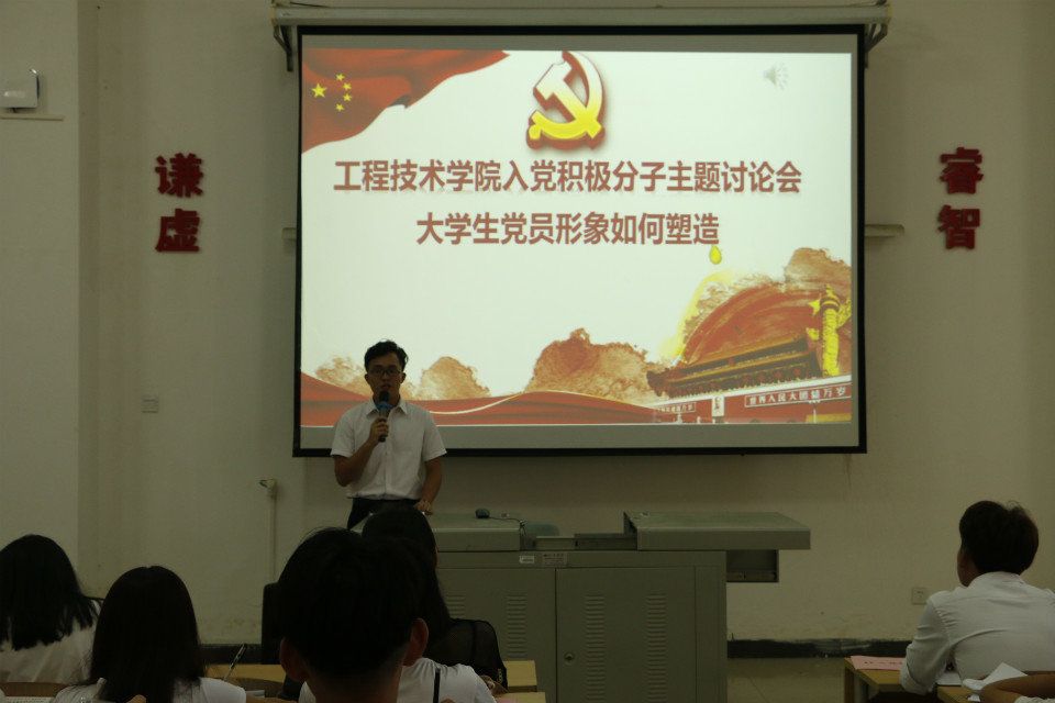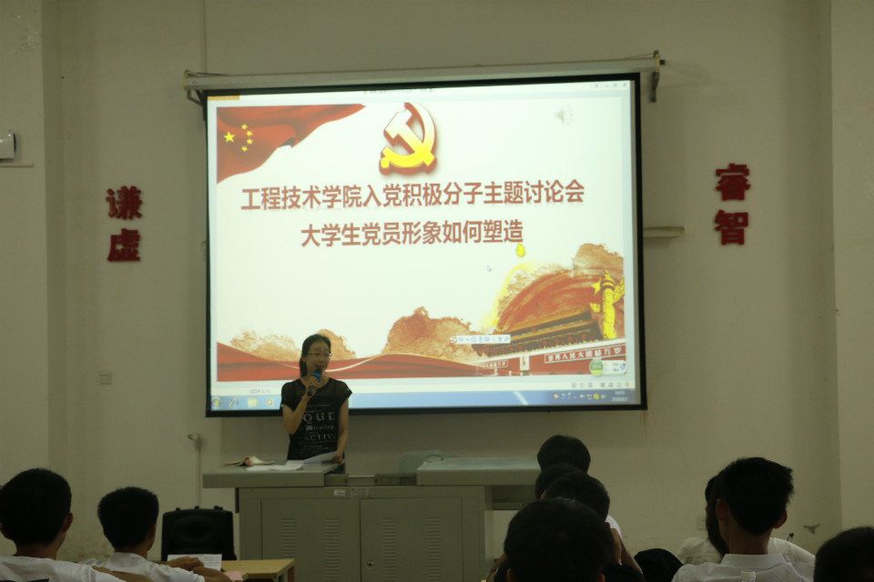 2018年6月4日讯(青年媒体中心潘明莉报道 )根据学校党委部署,6月3日下午,工程技术学院组织学院入党积极分子在2—526召开以“大学生党员形象如何塑造”为主题的讨论会会议。参与会议的人员主要有工程技术学院学生党支部书记代晓明老师以及16级、17级入党积极分子,本次会议由学生代表潘明莉同学主持.