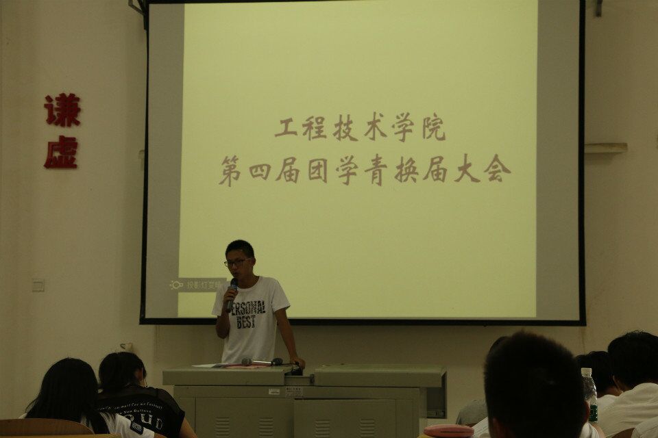 2018年6月4日讯(青年媒体中心陈昌彬报道)6月3日下午4点30分,工程技术学院团学青第四届换届大会在2—526举行,出席此次大会的有学生党支部书记代晓明老师、第三届院主席团成员、团学青干部以及全体团学青干事。
