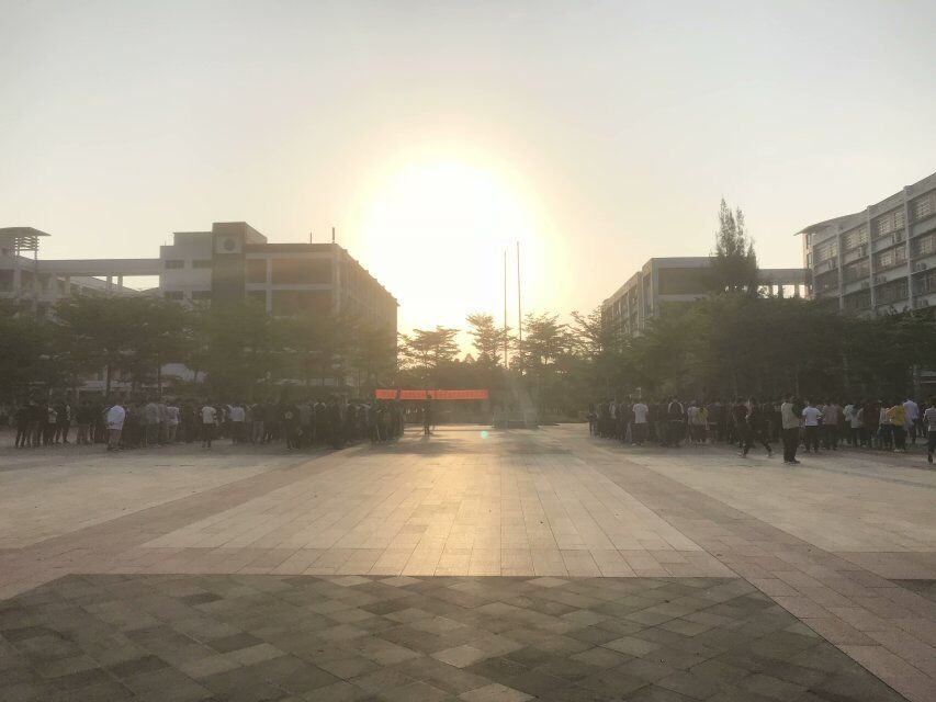 在学生干部的组织安排下,各班级迅速整齐的整理好了队伍。随后马上进行升旗仪式,在学生代表李云飞的主持发言下,升旗仪式正式开始。伴随着国歌的响起,全场一片肃静。在初生阳光的照耀下,师生们注视着五星红旗冉冉升起。