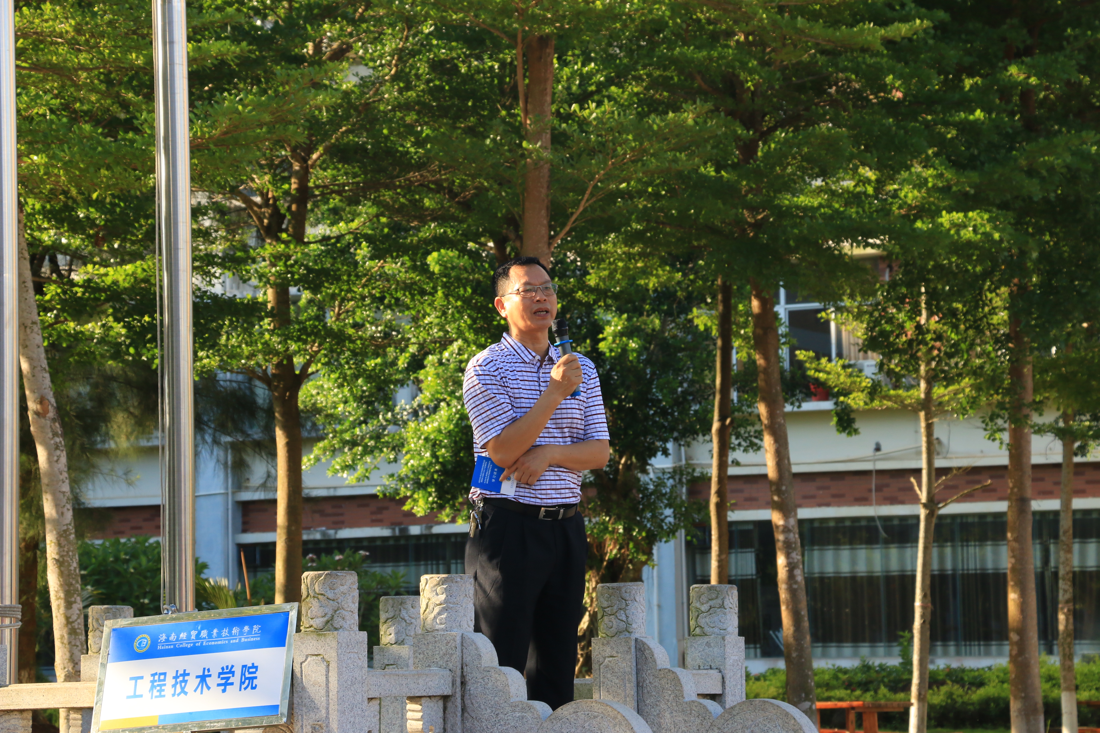 5月28日讯(工程技术学院报道)伴着晨光,迎着微风,工程技术学院“庆祝海南建省办经济特区30周年”升旗仪式在经贸广场举行。学院党总支书记陈继敏、学工办主任梁其钰、辅导员周恺、唐图、代晓明、徐超及2016、2017级全体学生出席仪式。