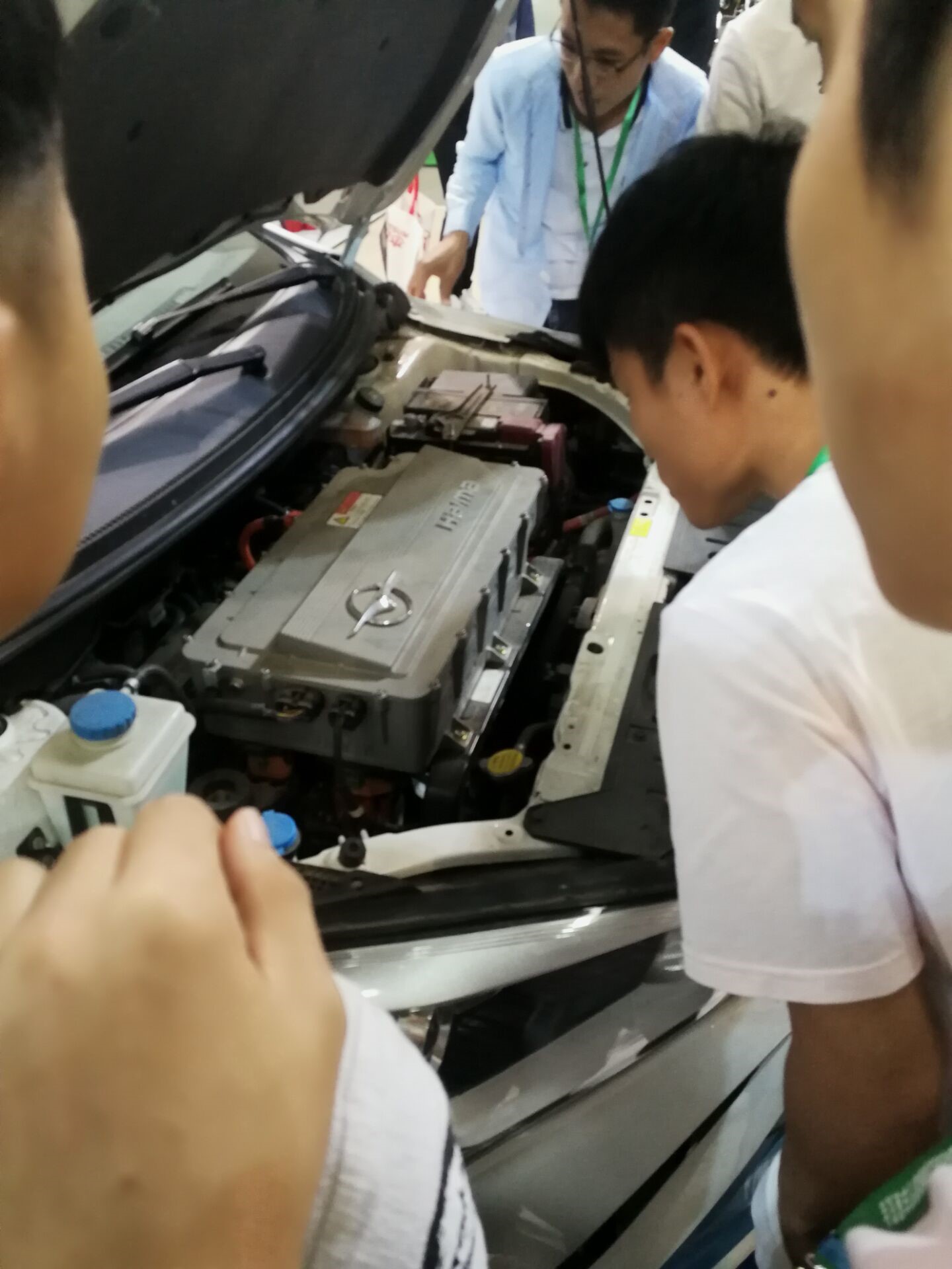 我院同学有序进入会场,认真聆听了主办方领导及相关企业人员讲话,然后在老师的带领下了解了新能源汽车先进的技术以及汽车构造等知识。