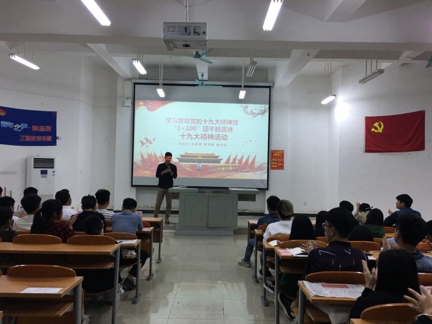 12月12日讯(青年媒体中心唐石昌报道) 12月12日晚20:00,我院在2-408开展了学习“贯彻党的十九大精神‘1+100’团干部宣讲活动。出席本次宣讲会的有我院团总支书记唐图老师、学生会主席张德金、团总支副书记符东平、组织部部长陈桂秋、16级团学干部以及17级团支书,大会由组织部部长陈桂秋主持。