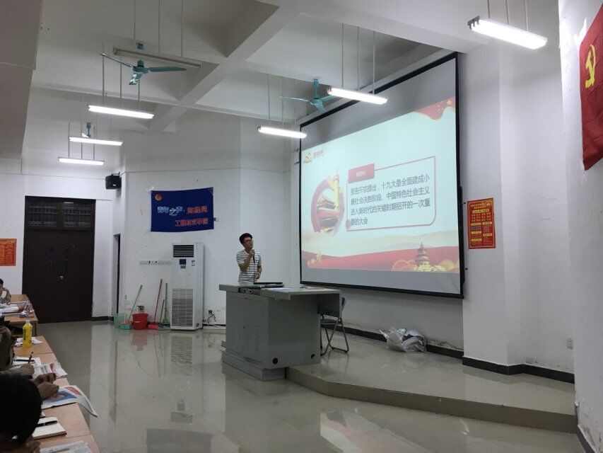 首先由团总支副书记符东平发言,他强调了十九大的四个“新”,即新时代、新思想、新矛盾、新目标。会议期间由17级团支书代表李云飞、尚卓、蔡奕明依次为我们宣讲十九大内容。最后由团学负责人唐图老师为大家做总结,总结包括以下几点:一是新时代要有新使命、新担当、新作为;二是青年兴则国家兴,青年强则国家强;三是青年一代有理想、有本领、有担当,国家就有前途,民族就有希望。