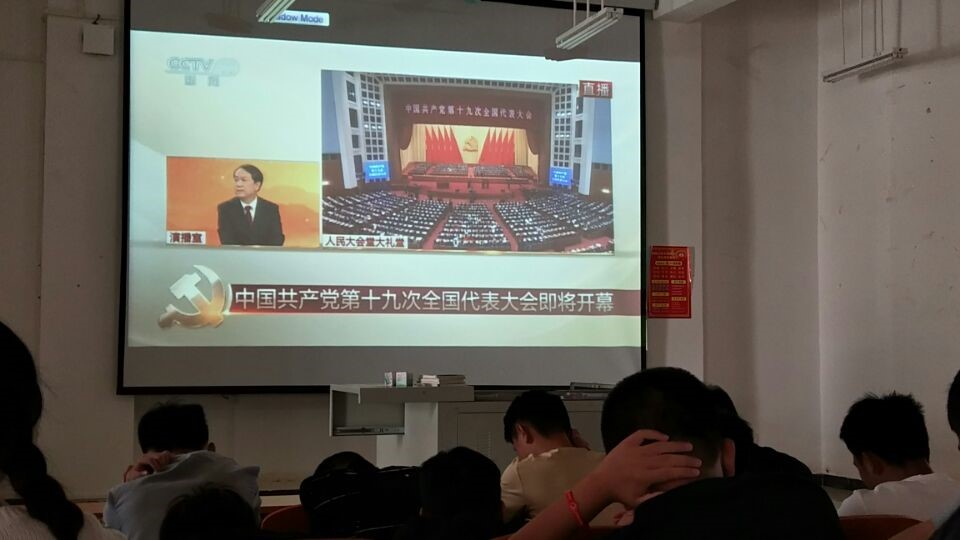 2017年10月18日上午9:00在人民大会堂举行了中国共产党第十九次全国代表大会的开幕式,在工程技术学院团总支的要求下,各班组织学生前往2栋4-408观看十九大直播,未能前往4-408观看直播的班级都自发组织了观看十九大直播的活动。