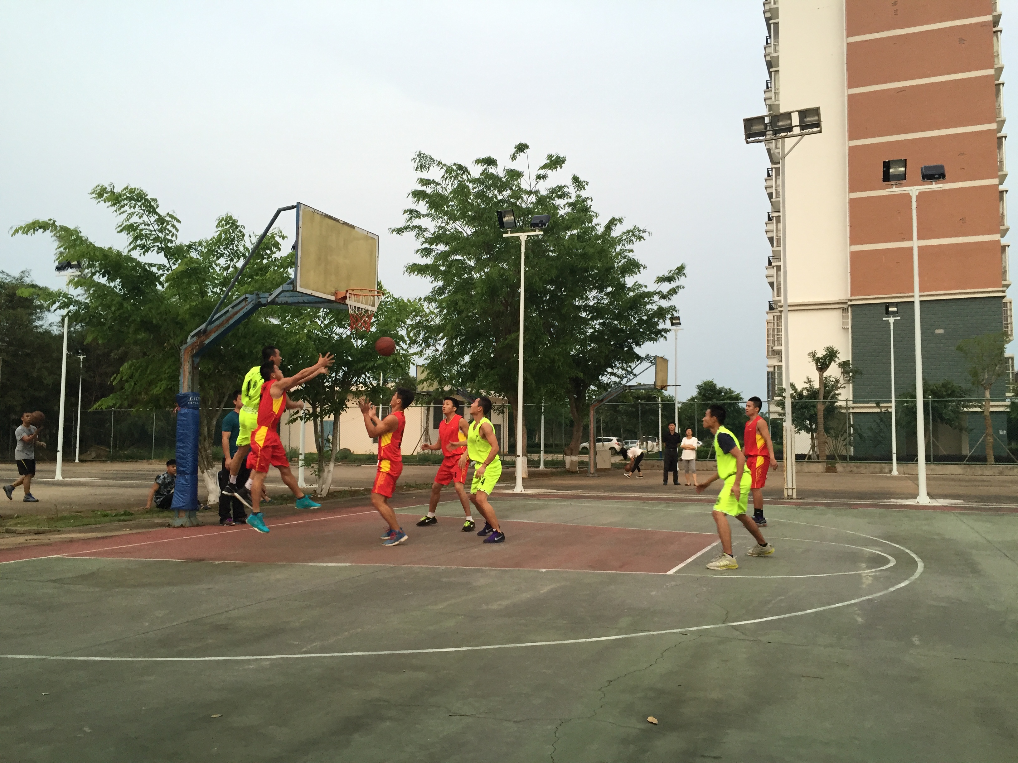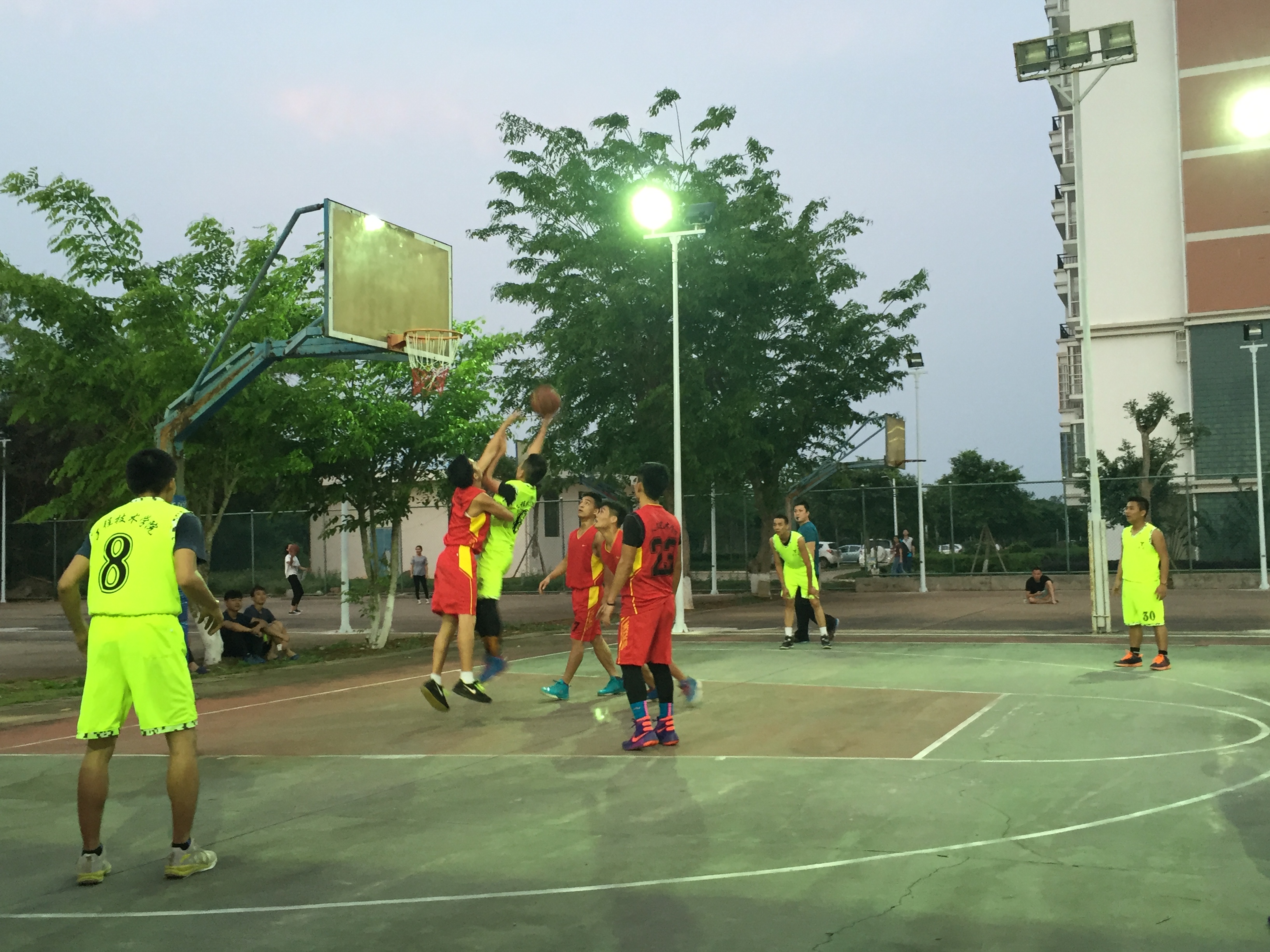 4月21日讯(工程技术学院 李京京报道)4月20日下午6时在篮球场展开了“青春篮球,魅力无限”海南经贸职业技术学院第七届大学篮球赛亚军的争夺赛,男队vs人文艺术学院,女队vs人文艺术学院,下午5时50分观众和和队员已经相继到达,团总支书记梁其钰老师、陈亚芳老师到达现场观战给工程加油助威!