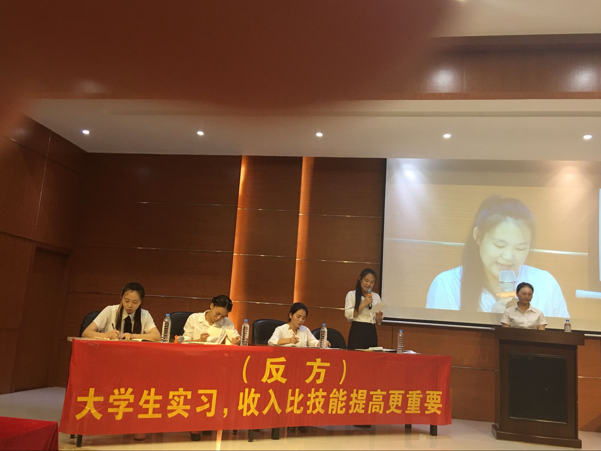 5月17日讯(工程技术学院 岳将红报道) 为了丰富同学们的课余生活,提升文学修养,调动同学们的积极性,5月16日晚学校于学术交流中心举行了第九届经贸大学生辩论赛预赛。其中预赛参赛的学院一共有六个,两两一组分正反方比赛,比赛共三场。第三场比赛中,工程技术学院作为正方迎战反方国际教育学院代表队。本场比赛的辩题为,大学生实习技能提高与收入哪个更重要。
