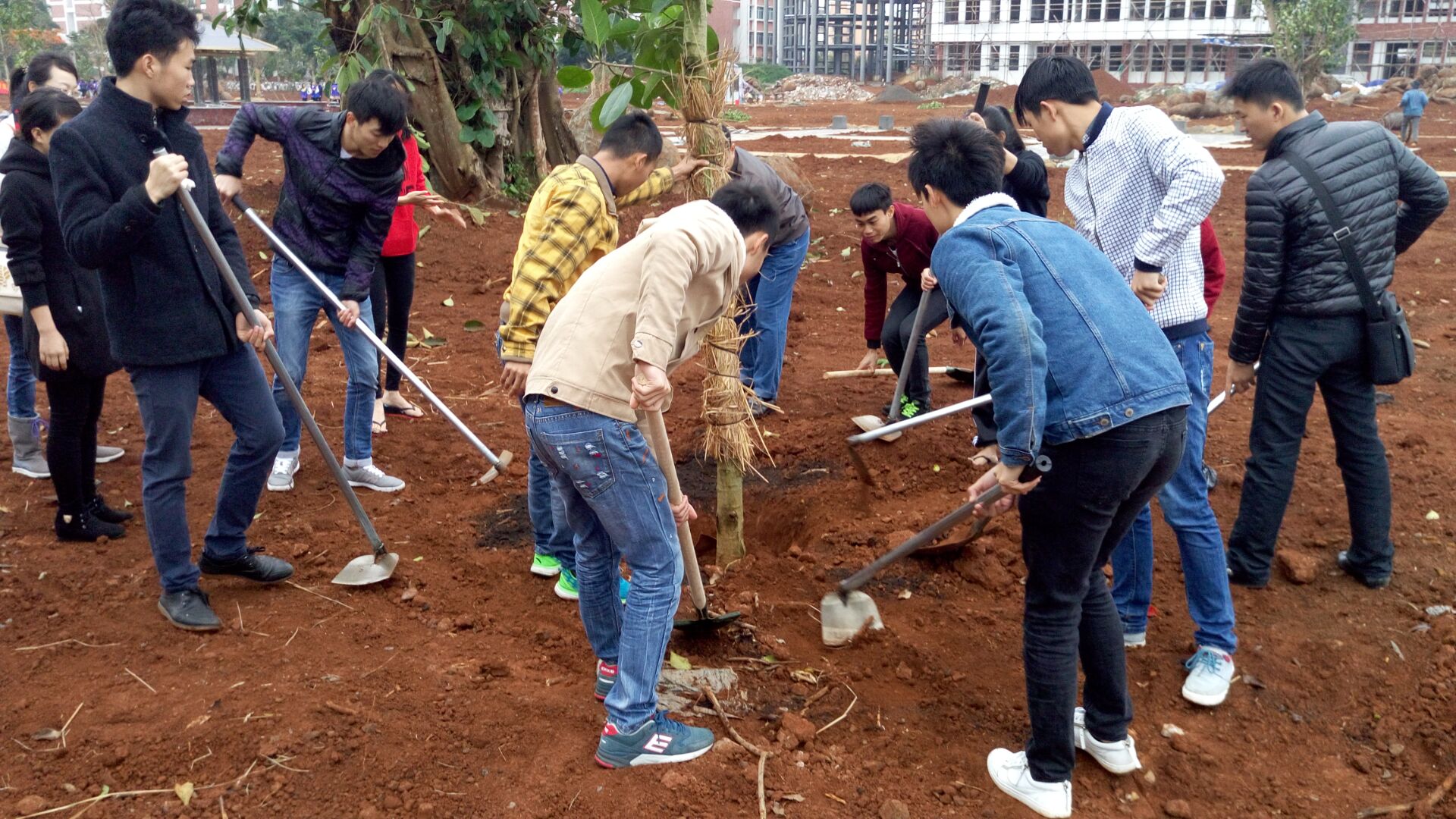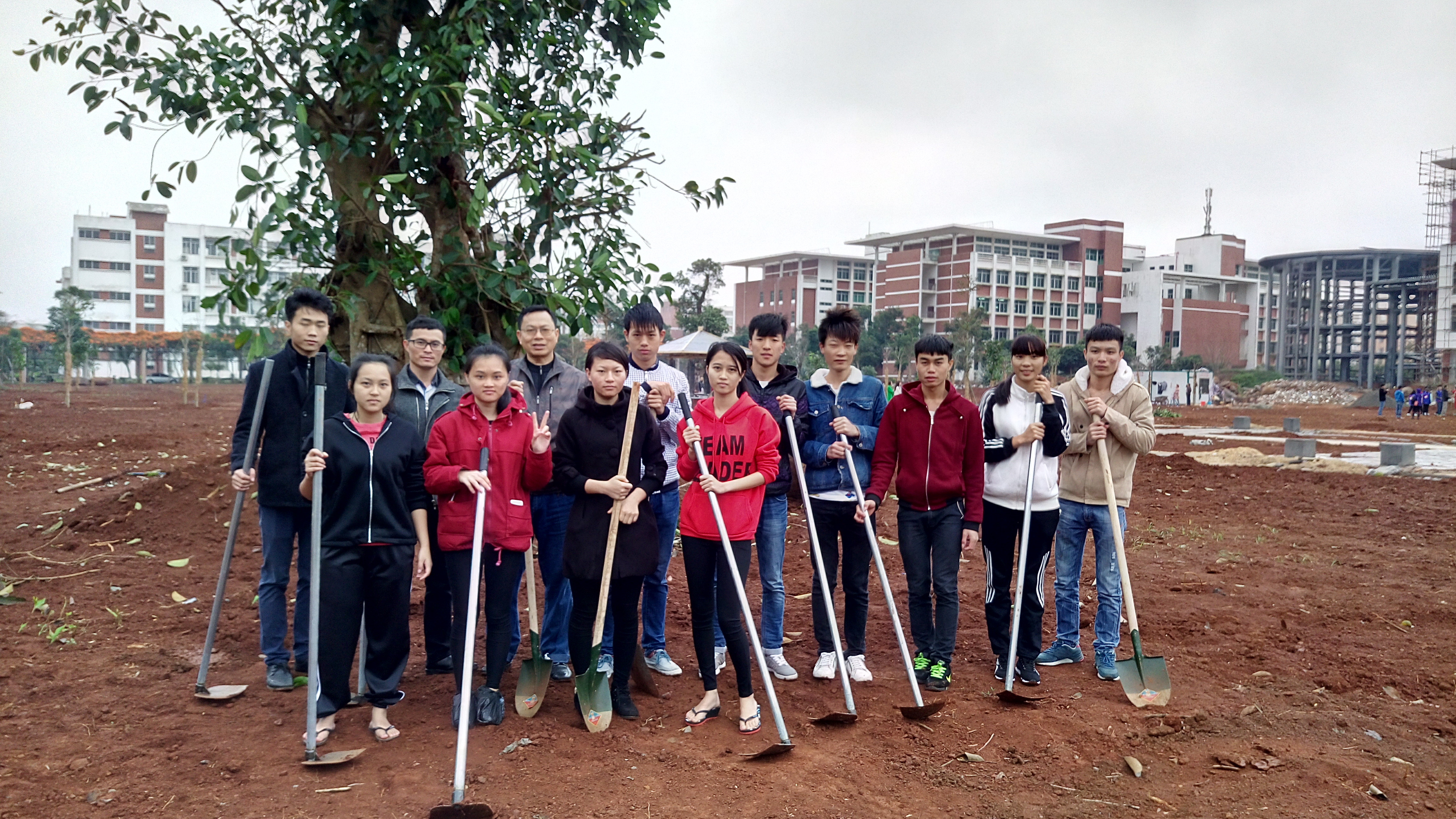 3月12日讯(工程技术学院 李京京报道) 春暖花开,生意盎然的阳春三月。3月11日上午,在学校党委书记张继友、副院长陈修焕等领导的带领下,我院志愿者也跟随着我院党总支书记陈继敏、代晓明老师、梁其钰老师和龙腾老师的脚步参与到了义务植树活动中,共建美丽校园。