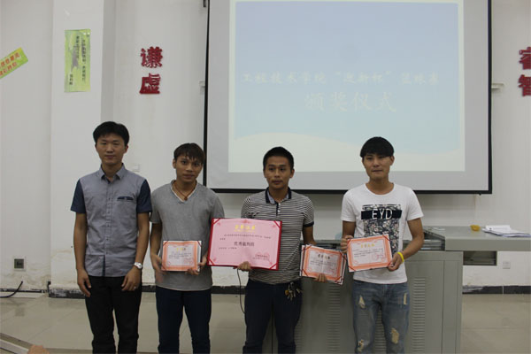 会议首先由梁老师做开场讲话。接着进行颁奖,第一轮由梁其钰老师给优秀裁判组颁奖,分别是(组长谢龙)成员(谢龙,陈鑫,唐鹏,张金平,符成良,田斌)。第二轮由陈继敏书记为获得本次篮球赛名次的班级颁奖,分别是第一名14中德2班(队长罗明吉)第二名14网络2班(队长谢龙)第三名15汽修2班(队长王杰)优秀奖14网络1班(队长张水胜)体育道德风尚奖15网络1班(队长黄仕鸿)。第三轮由梁老师为东西部冠军颁奖,分别是东部冠军14网络2班(队长谢龙),西部冠军14中德2班(队长罗明吉)。第四轮由陈继敏书记为优秀球员颁奖,分别是最佳三分王(谢龙),MVP(罗明吉)。老师们与这些获奖人员相继留影纪念。至此,我院“迎新杯”篮球赛颁奖典礼圆满结束。