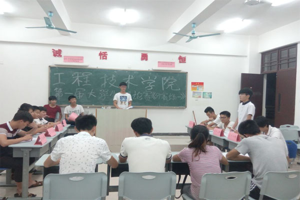 11月11日讯(工程技术学院 李京京报道)为了充分展示我院大学生的团结协作、创新精神以及人文风采,引领我院广大学生关注社会时事、理性认知和评价各类热门话题,工程技术学院决定举办“工程技术学院第一届大学生辩论赛”。由我院15级各班以及工程技术学院团学青代表队工组成了14支参赛队伍。