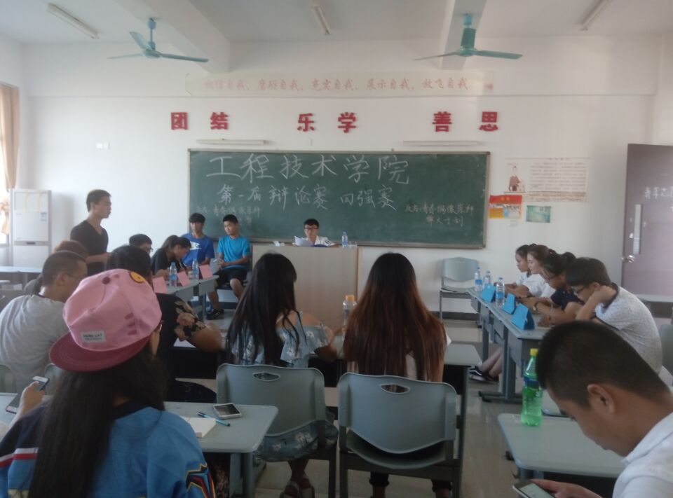 11月18日讯(工程技术学院 李京京报道)11月17日下午3时“工程技术学院第一届大学生辩论赛”七强赛分别在2-525、2-524举行。本次比赛分为三场,分别是正方15多媒体代表队大学生休学创业利大于弊vs反方15移动通信代表队大学生休学创业弊大于利;正方15汽服班代表队青春偶像崇拜利大于弊vs15电商2班代表队青春偶像崇拜弊大于利;正方15汽修2班代表队网络对大学生的影响利大于弊vs15网络2班代表队网络对大学生的影响弊大于利。本次辩论赛由老师以及上届参加过辩论赛的学长学姐和团学青干部成员做评委。辩论赛在主持人的开场白下拉开帷幕。