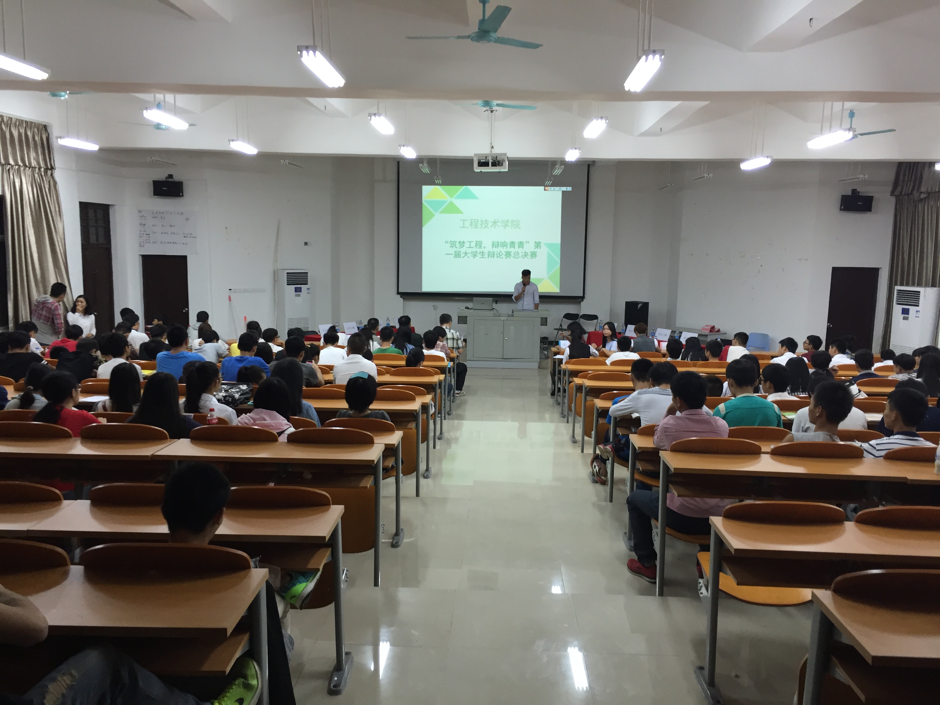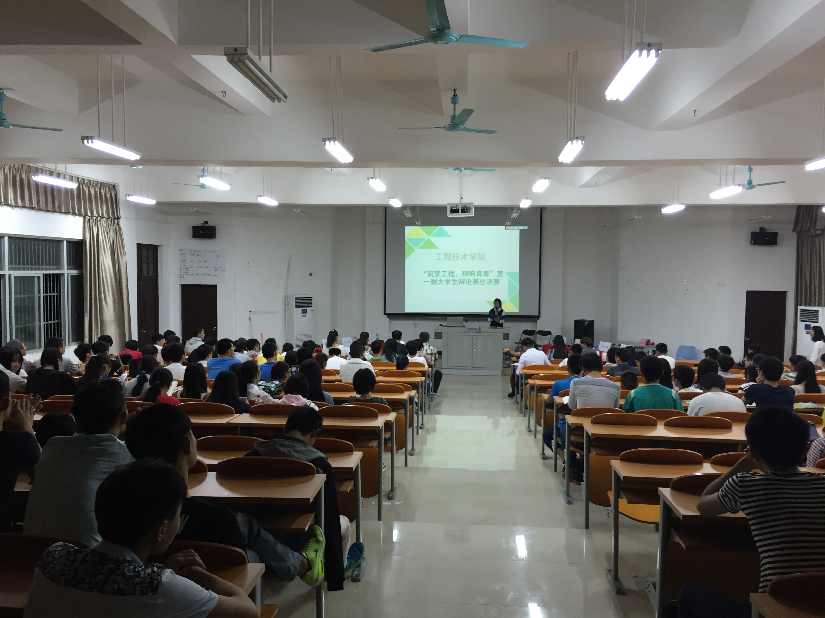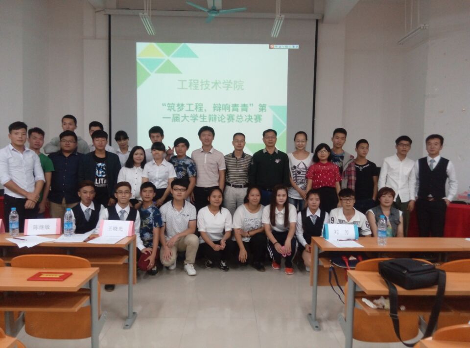 11月30日讯(工程技术学院 李京京报道)经过前几轮激烈的比拼,11月29日晚7时,工程技术学院“筑梦工程,辩响青春”第一届大学生辩论赛”总决赛于2-408点燃战火。本次活动分为辩论环节和颁奖环节。首先由陈悄悄随着投影上播放着我院开学以来开展所有活动的视频做了激情洋溢开场主持。本场辩论赛评委有党总支书记陈继敏,副院长王忠,学工办副主任梁其钰老师,团学负责人代晓明老师,王晓光老师、刘方老师、团学青副秘书长李京京及15级学生代表周春玲。