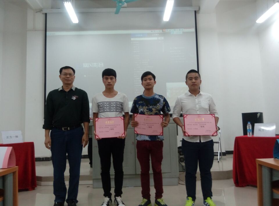 接下来进入颁奖环节,由陈悄悄公布本次辩论赛的获奖名单。荣获本次辩论赛冠军:15移动通信,亚军:15汽修2班,季军:15电商2班,优秀奖:15电商1班;最后由各位嘉宾以及评委与各位选手合影留念,精彩瞬间在这一刻定格,为期一个多月极具意义的辩论赛也就此落下了帷幕。
