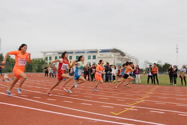 在主持人的开场白下,运动项目正式开始了,上午进行了学生男子女子200米跑、学生男子女子400米跑、学生男女混合跳绳接力、4*400米接力等一系列径赛,男女生三级跳等田赛、教工队滚球碰准等趣味赛。下午进行了男子女子200米跑、400米跑决赛、学生男子女子4*100接力跑决赛、学生男女混合20*200米接力等一系列径赛,学生男子跳远、教工立定跳远等田赛,学生抛球比远等趣味赛。赛场上选手们轻捷如燕,威猛如鹰,为挑战自我而奋斗,为集体荣誉而拼搏。赛场下观众们阵阵有力的助威,声声有劲的呐喊,欢呼声、加油声,响彻赛场上空,运动员们在赛场上迎着大家的呼喊坚持冲到了终点。我院运动员赢得了400米跑第一、4*100第三、20*200第四等奖项。